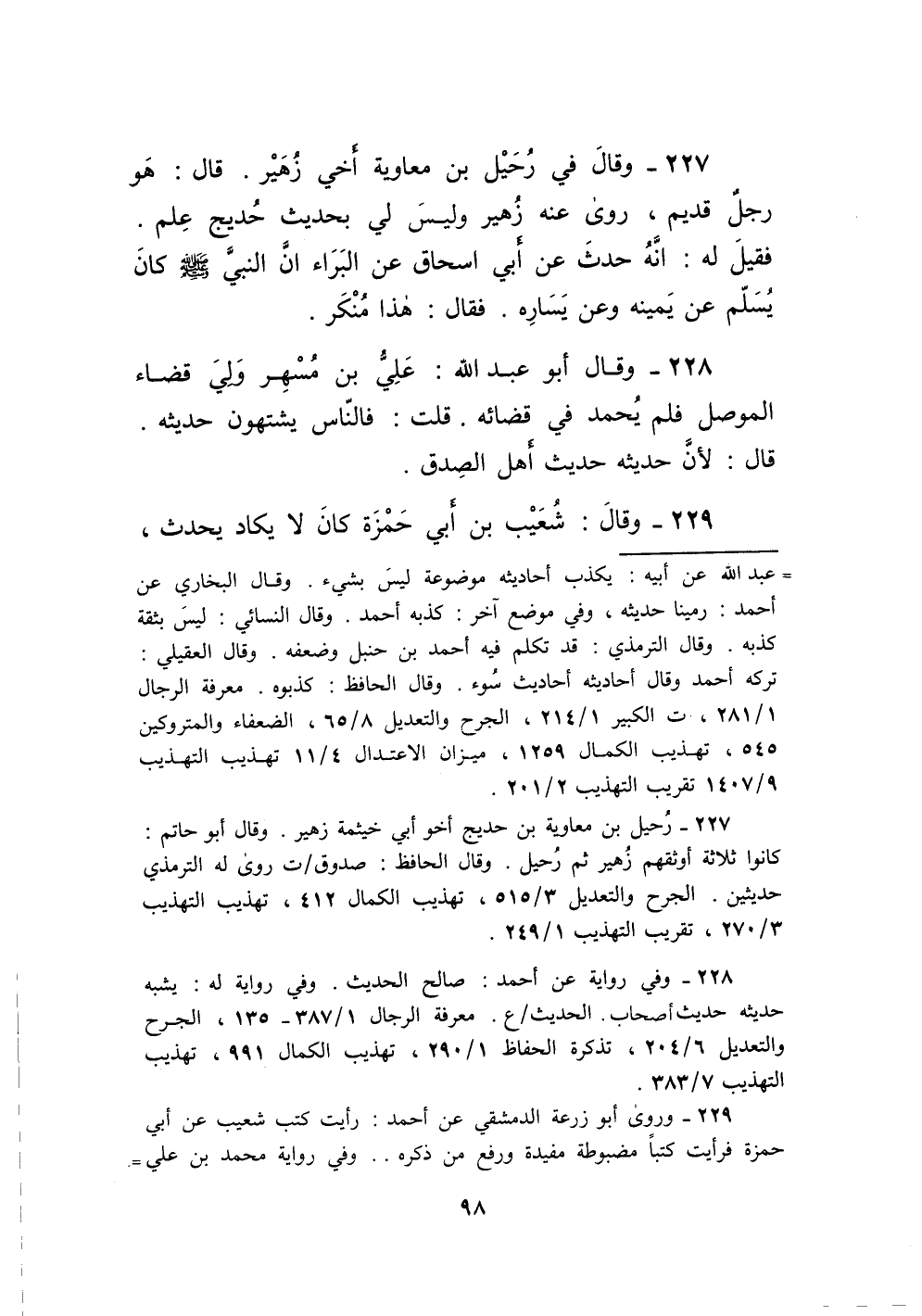 227 - وَقَالَ فِي رُحَيْلِ بْنِ مُعَاوِيَةَ أَخِي زُهَيْرٍ قَالَ هُوَ رَجُلٌ قَدِيمٌ رَوَى عَنْهُ زُهَيْرٌ وَلَيْسَ لِي بِحَدِيثِ حُدَيْجٍ عِلْمٌ فَقِيلَ لَهُ إِنَّهُ حَدَّثَ عَنْ أَبِي إِسْحَاقَ عَنِ الْبَرَاءِ أَنَّ النَّبِيَّ صَلَّى اللَّهُ عَلَيْهِ وَسَلَّمَ كَانَ يُسَلِّمُ عَنْ يَمِينِهِ وَعَنْ يَسَارِهِ فَقَالَ هَذَا مُنْكَرٌ