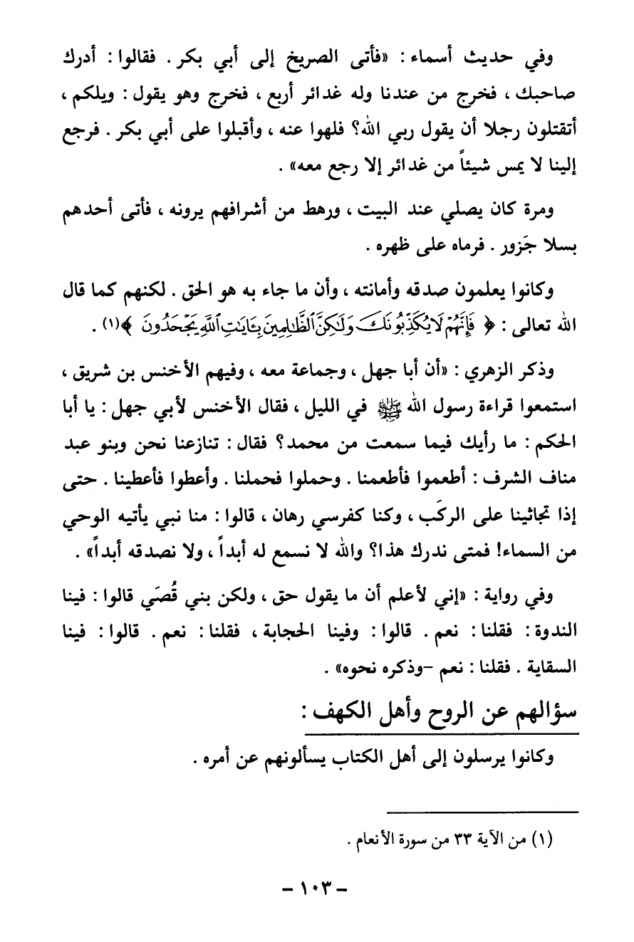 سؤالهم عن الروح وأهل الكهف وكانوا يرسلون إلى أهل الكتاب يسألونهم عن أمره؟ .