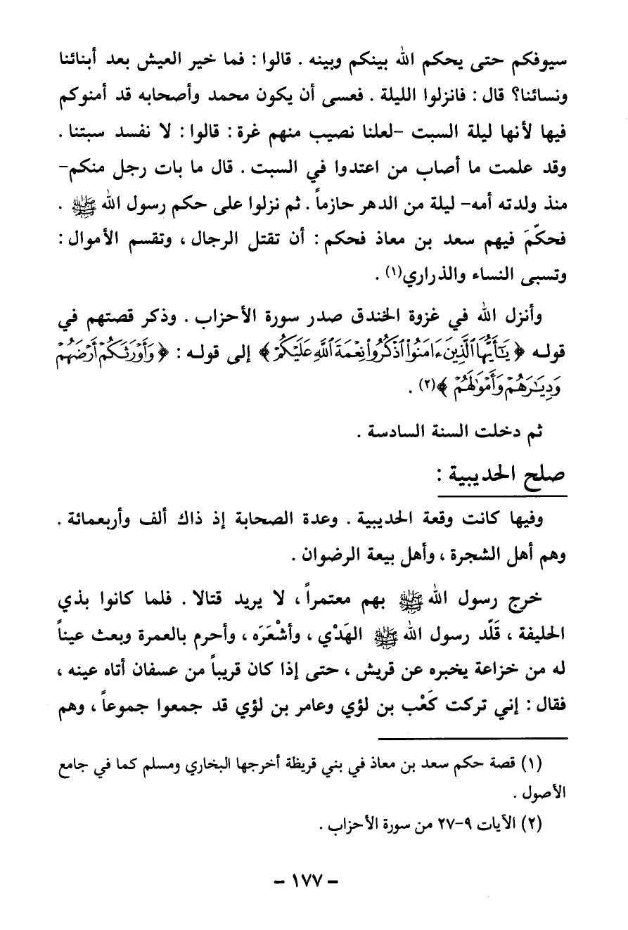 (¬1) قصة سعد بن معاذ في بني قريظة أخرجها البخاري ومسلم كما في جامع الأصول.