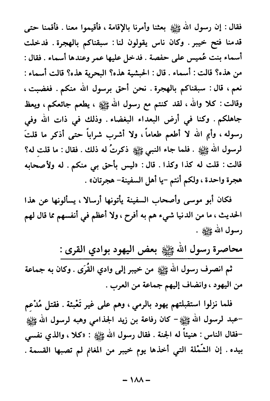 محاصرة رسول اللَّه -صلى اللَّه عليه وسلم - بعض اليهود بوادي القرى ثم انصرف رسول اللَّه -صلى اللَّه عليه وسلم - من خيبر إلى وادي القرى وكان به جماعة من اليهود، وانضاف إليهم جماعة من العرب.