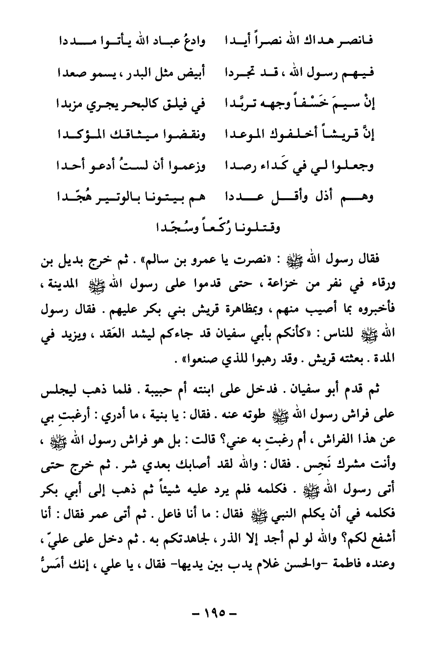 فيهم رسول الله , قد تجردا ... أبيض مثل البدر , يسمو صعدا