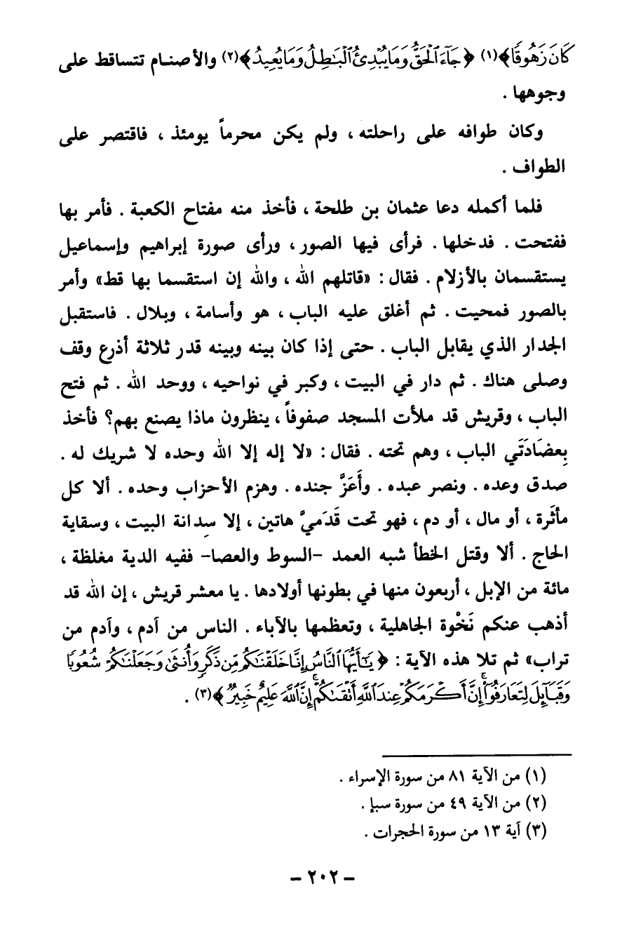 {جَاءَ الْحَقُّ وَمَا يُبْدِئُ الْبَاطِلُ وَمَا يُعِيدُ} [سبأ: 49] (¬1) والأصنام تتساقط على وجوهها.