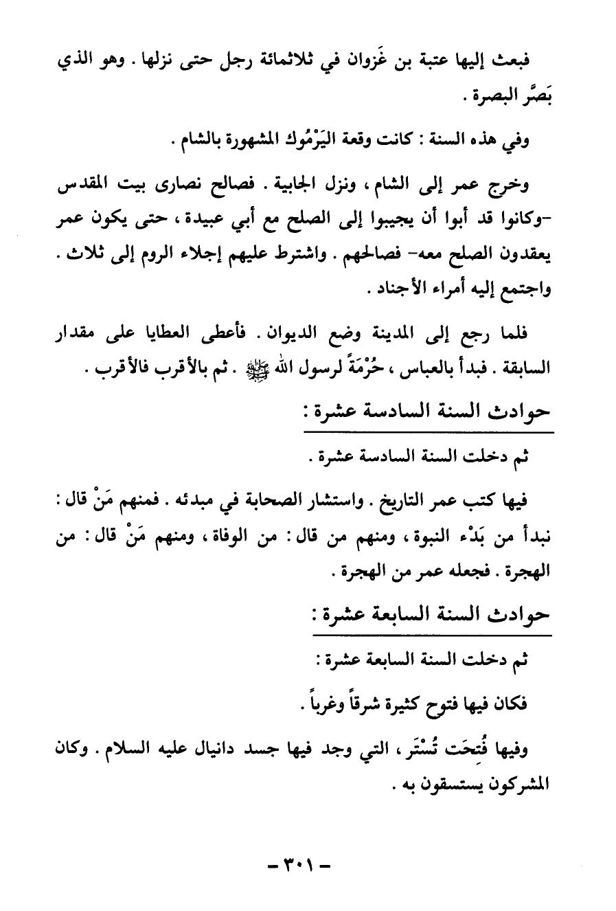 فيها كتب عمر التاريخ. واستشار الصحابة في مبدئه. فمنهم من قال نبدأ من بدء النبوة. ومنهم من قال من الوفاة، ومنهم من قال من الهجرة. فجعله من الهجرة.