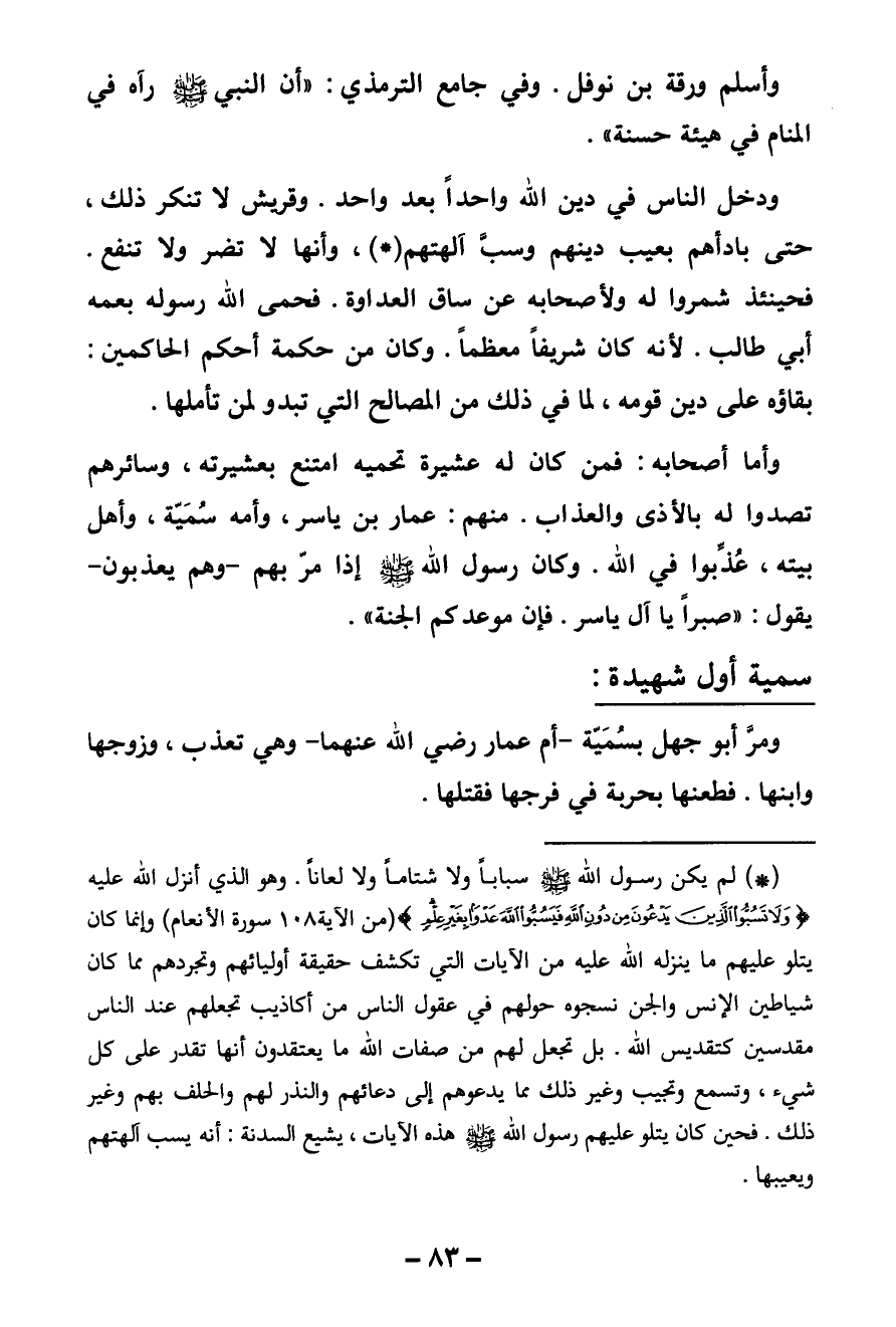 (¬1) لم يكن رسول الله صلى الله عليه وسلم سبابا ولا شتاما ولا لعانا. وهو الذي أنزل الله عليه: {ولا تسبوا الذين يدعون من دون الله فيسبوا الله عدوا بغير علم} (من الآية 108 سورة الأنعام) وإنما كان يتلو عليهم ما ينزله الله عليه من الآيات التي تكشف حقيقة أوليائهم وتجردهم مما كان شياطين الإنس والجن نسجوه حولهم في عقول الناس من أكاذيب تجعلهم عند الناس مقدسين كتقديس الله. بل تجعل لهم من صفات الله ما يعتقدون أنها تقدر على كل شيء، وتسمع وتجيب وغير ذلك مما يدعوهم إلى دعائهم والنذر لهم والحلف بهم وغير ذلك. فحين كان يتلو عليهم رسول الله صلى الله عليه وسلم هذه الآيات، يشيع السدنة: أنه يسب آلهتهم ويعيبها.