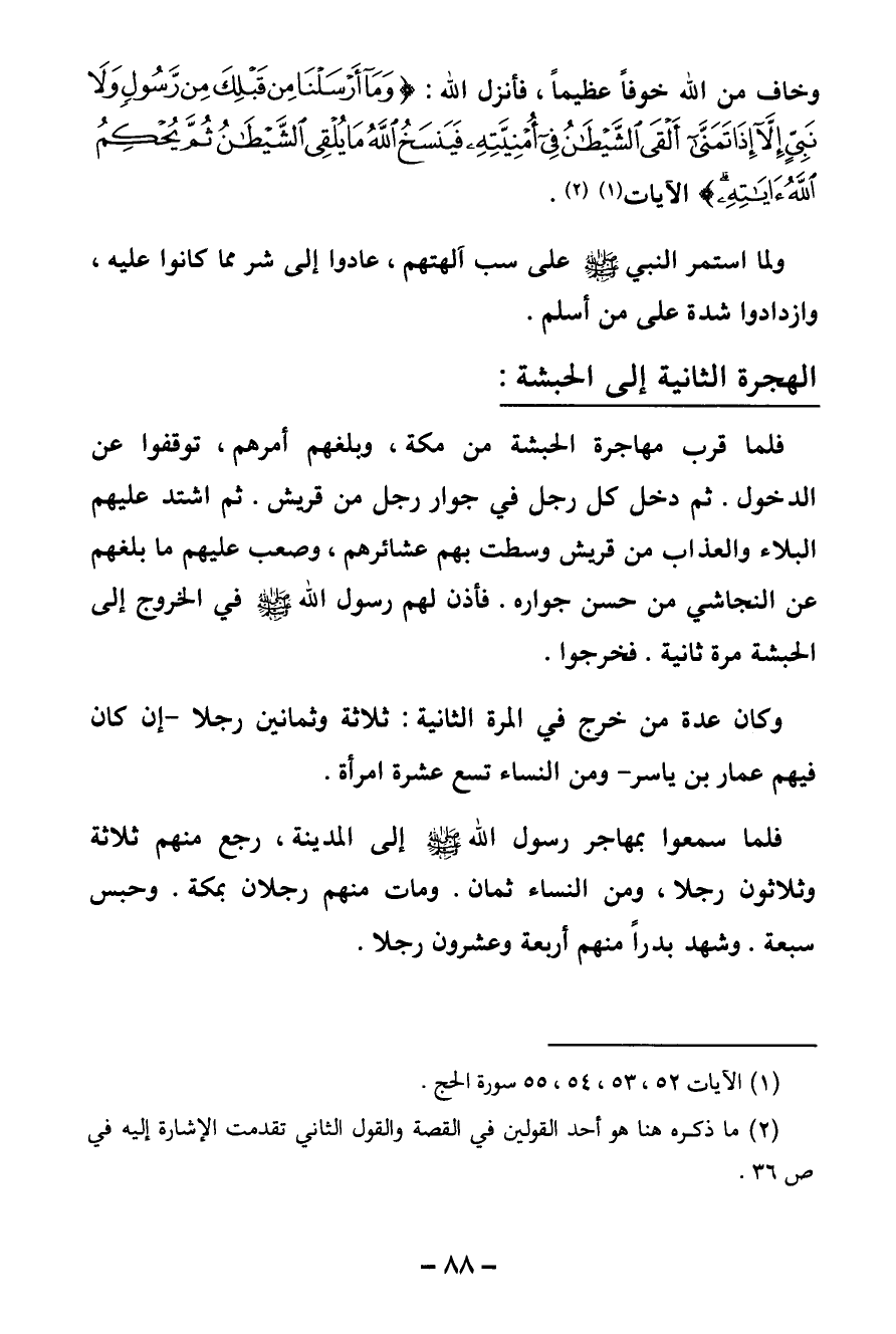 الهجرة الثانية إلى الحبشة فلما قرب مهاجرة الحبشة من مكة، وبلغهم أمرهم، توقفوا عن الدخول. ثم دخل كل رجل في جوار رجل من قريش. ثم اشتد عليهم البلاء والعذاب من قريش وسطت بهم عشائرهم، وصعب عليهم ما بلغهم عن النجاشي من حسن جواره. فأذن لهم رسول الله صلى الله عليه وسلم في الخروج إلى الحبشة مرة ثانية. فخرجوا.