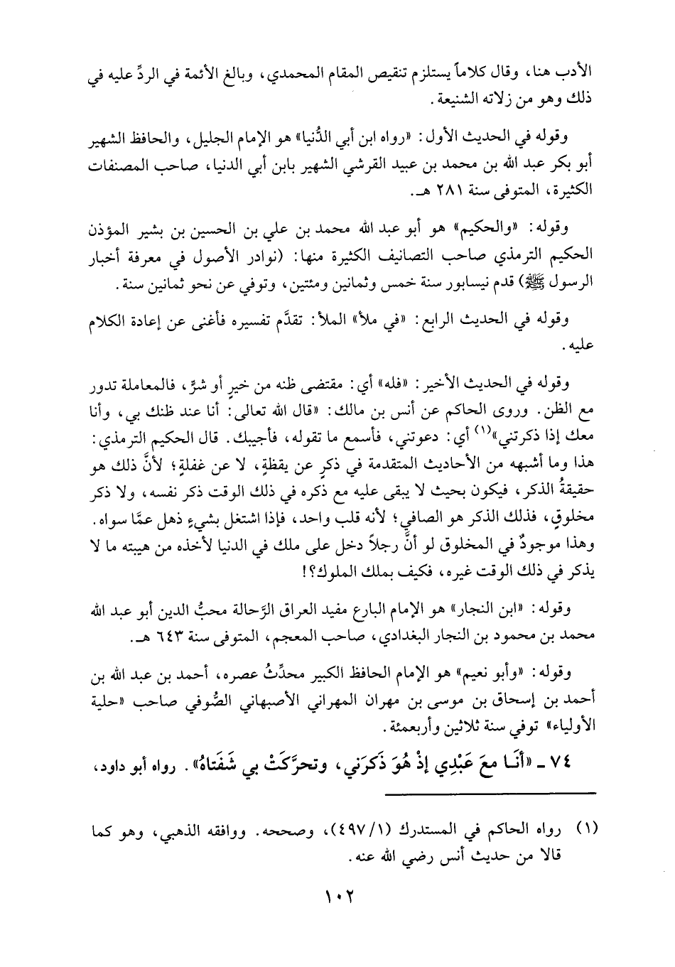 74- "أنا مع عبدي إذ هو ذكرني، وتحركت بي شفتاه ". رواه أبو داود،