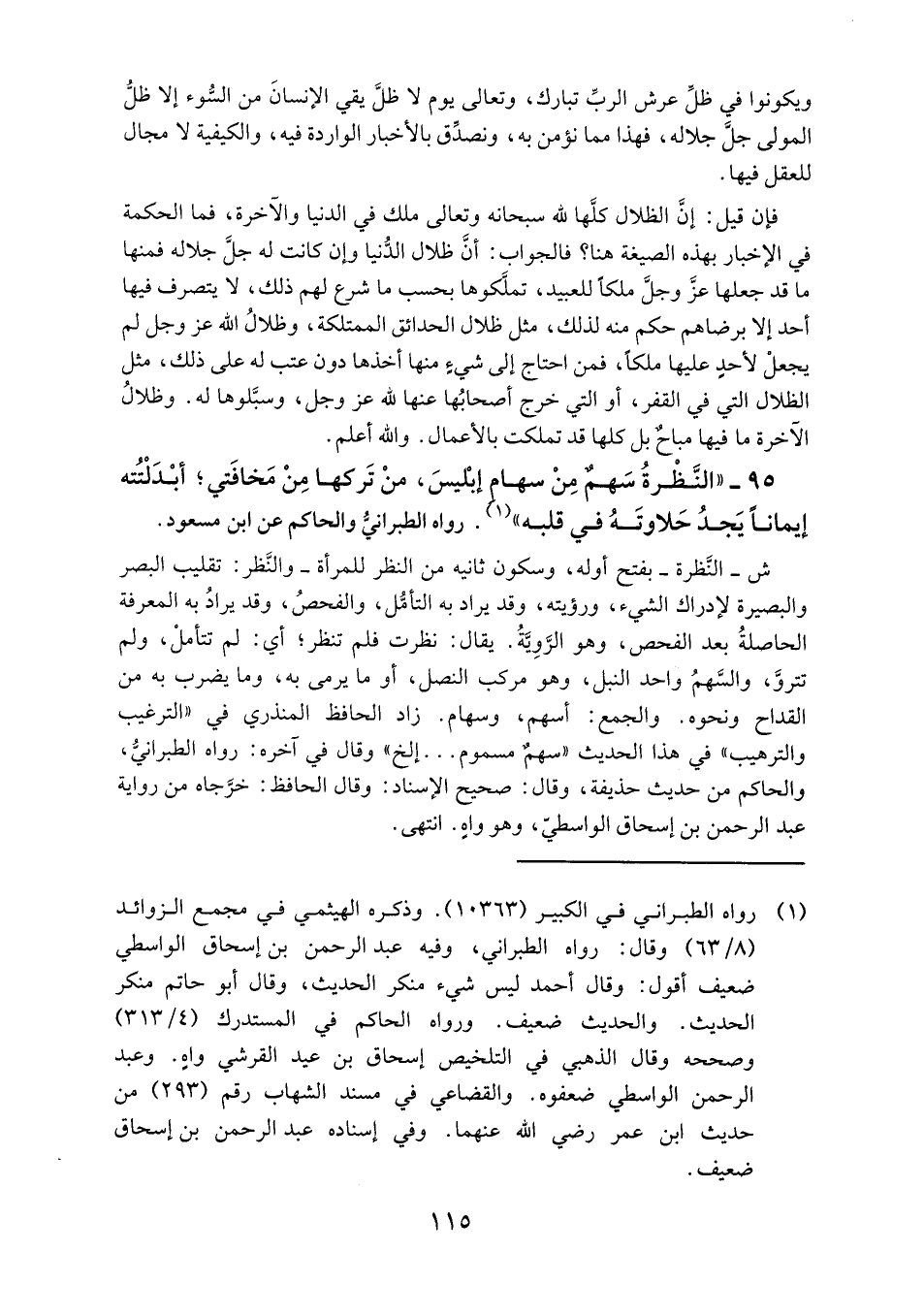 95- "النظرة سهم من سهام إبليس، من تركها من مخافتي؛ أبدلتهُ إيمانًا يجد حلاوته في قلبه" 1. رواه الطبراني والحاكم عن ابن مسعود.