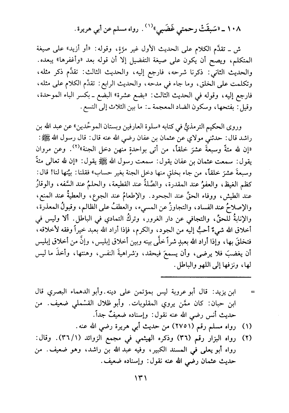 108- "سبقت رحمتي غضبي" 1. رواه مسلم عن أبي هريرة.