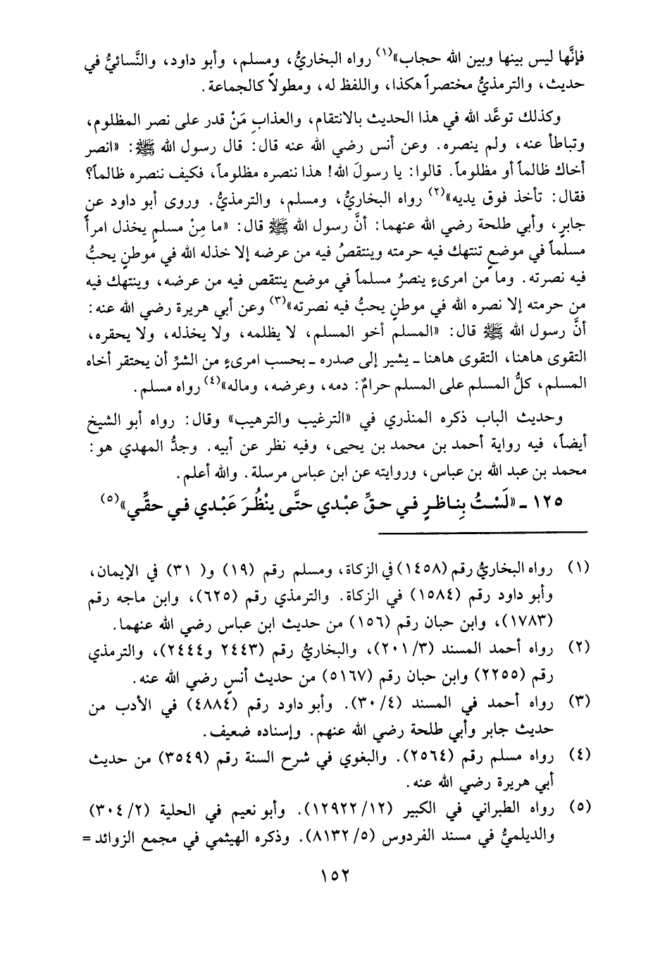 125- "لست بناظر في حق عبدي حتى ينظر عبدي في حقي"1