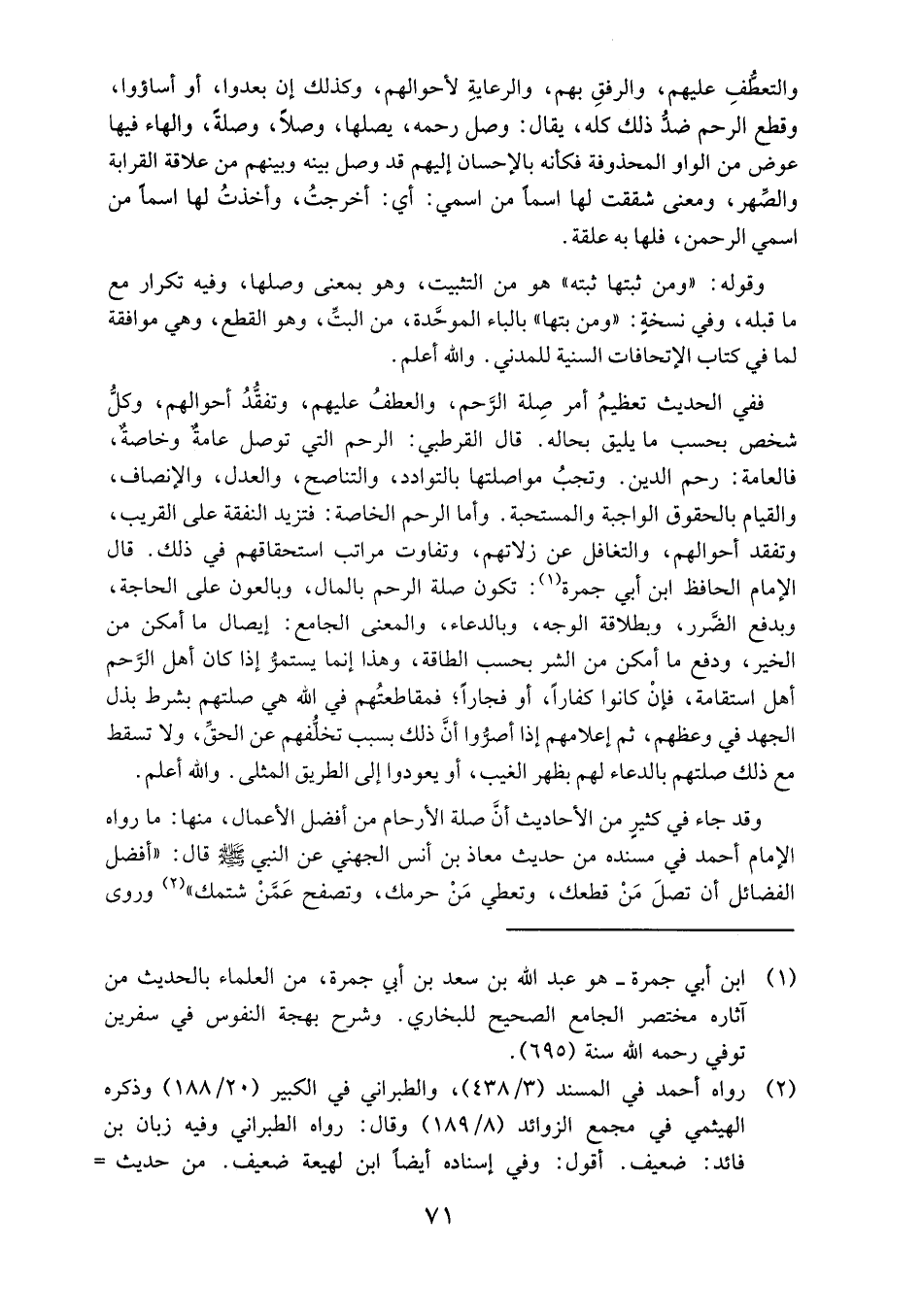 وقد جاء في كثير من الأحاديث أن صلة الأرحام من أفضل الأعمال، منها: ما رواه الإمام أحمد في مسنده من حديث معاذ بن أنس الجهني عن النبي صلى الله عليه وسلم قال: "أفضل الفضائل أن تصل من قطعك، وتعطي من حرمك، وتصفح عمن شتمك" 2 وروي
