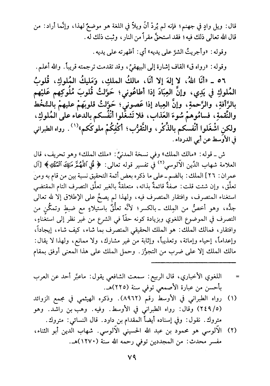 شرح حديث: أنا الله، لا إله إلا أنا، مالك الملك