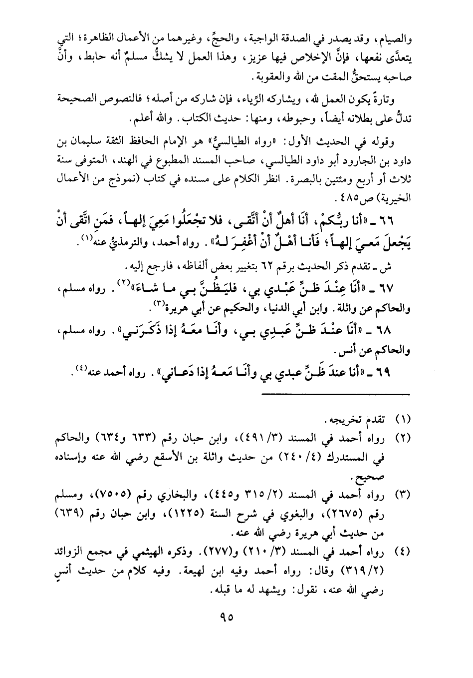 69- "أنا عند ظن عبدي بي وأنا معه إذا دعاني ". رواه أحمد عنه1