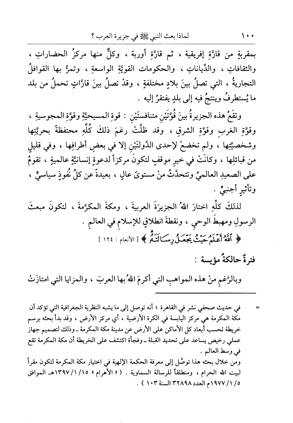 وتقع هذه الجزيرة بين قوّتين متنافستين: قوة المسيحيّة وقوّة المجوسية، وقوّة الغرب وقوّة الشرق، وقد ظلّت رغم ذلك كلّه محتفظة بحريّتها وشخصيّتها، ولم تخضع لإحدى الدّولتين إلا في بعض أطرافها، وفي قليل من قبائلها، وكانت في خير موقف لتكون مركزا لدعوة إنسانيّة عالمية، تقوم على الصعيد العالميّ وتتحدّث من مستوى عال، بعيدة عن كلّ نفوذ سياسيّ، وتأثير أجنبيّ.