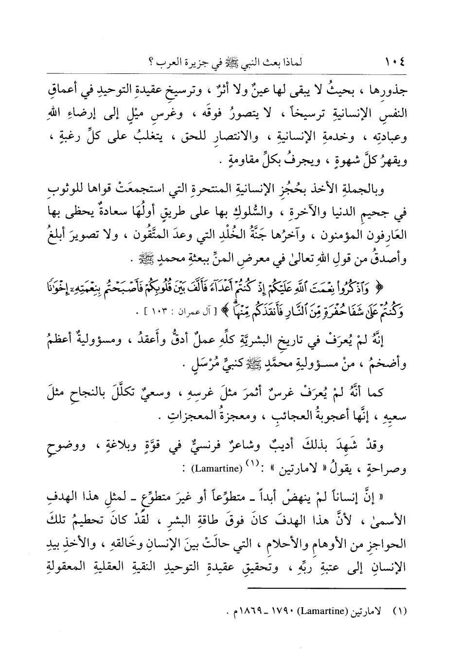 وقد شهد بذلك أديب وشاعر فرنسيّ في قوّة وبلاغة، ووضوح وصراحة، يقول «لامارتين:) Lamartine ( «1» : «