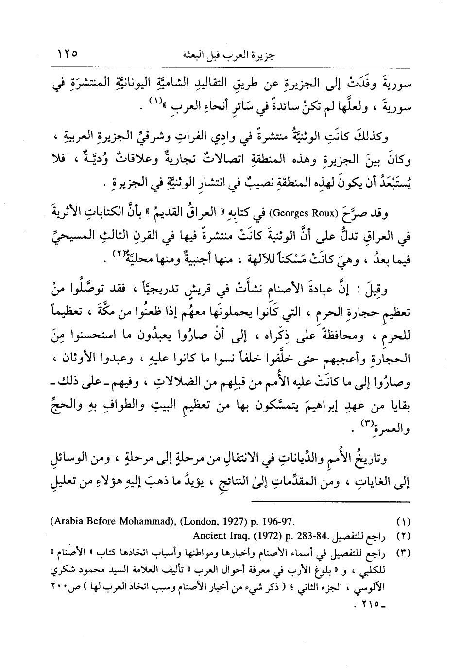 وقد صرّح) Georges Roux (في كتابه «العراق القديم» بأنّ الكتابات الأثرية في العراق تدلّ على أنّ الوثنية كانت منتشرة فيها في القرن الثالث المسيحيّ فيما بعد، وهي كانت مسكنا للآلهة، منها أجنبية ومنها محليّة «2» .