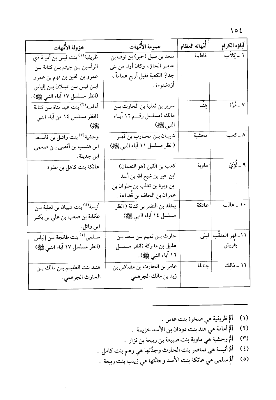 11- فهر الملقّب بقريش ليلى حارث بن تميم بن سعد بن هذيل بن مدركة (انظر مسلسل 16 آباء النبي صلى الله عليه وسلم) . سلمى «5» بنت طانجة بن إلياس (انظر مسلسل 17 آباء النبي صلى الله عليه وسلم)