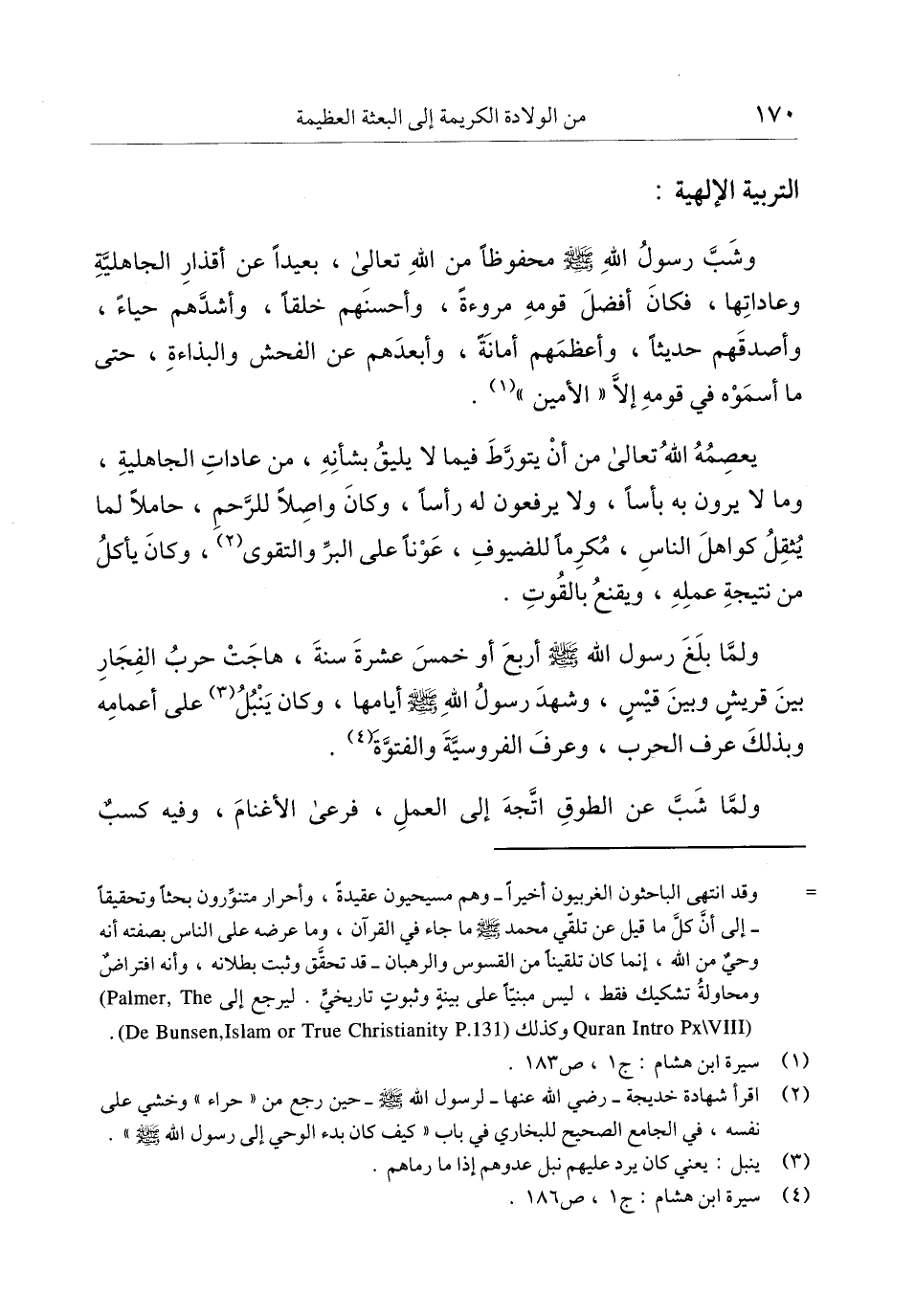 - وقد انتهى الباحثون الغربيون أخيرا- وهم مسيحيون عقيدة، وأحرار متنوّرون بحثا وتحقيقا إلى أنّ كلّ ما قيل عن تلقّي محمد صلى الله عليه وسلم ما جاء في القرآن، وما عرضه على الناس بصفته أنه وحي من الله، إنما كان تلقينا من القسوس والرهبان- قد تحقّق وثبت بطلانه، وأنه افتراض ومحاولة تشكيك فقط، ليس مبنيّا على بينة وثبوت تاريخيّ. ليرجع إلى) Palmer ,The) De.Bunran Intro Px VIII (وكذلك) De Bunsen ,Islam or True Christianity P. 131 (