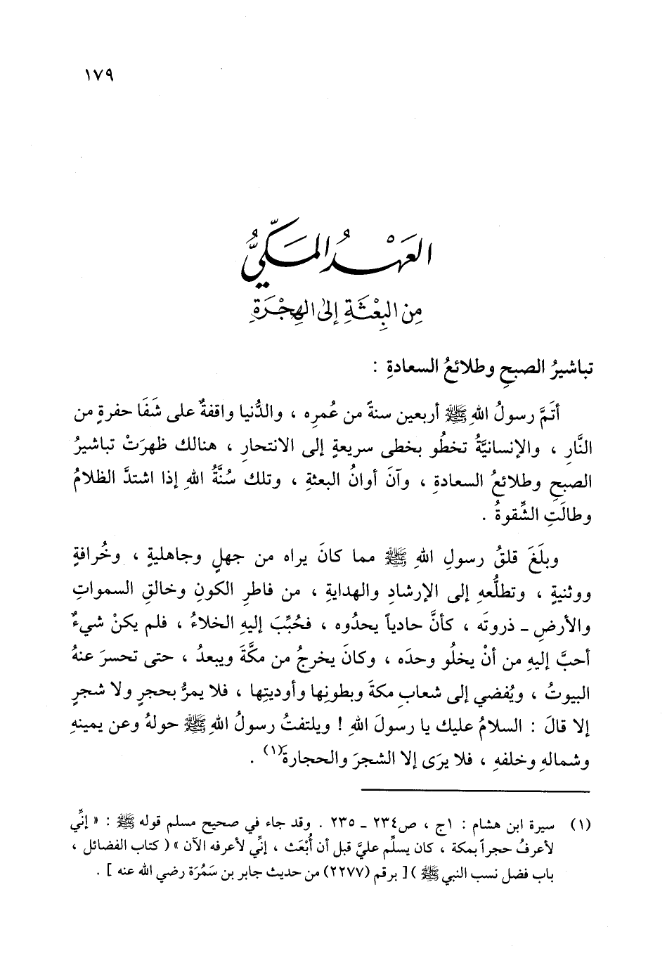 أتمّ رسول الله صلى الله عليه وسلم أربعين سنة من عمره، والدّنيا واقفة على شفا حفرة من النّار، والإنسانيّة تخطو بخطى سريعة إلى الانتحار، هنالك ظهرت تباشير الصبح وطلائع السعادة، وآن أوان البعثة، وتلك سنّة الله إذا اشتدّ الظلام وطالت الشّقوة.