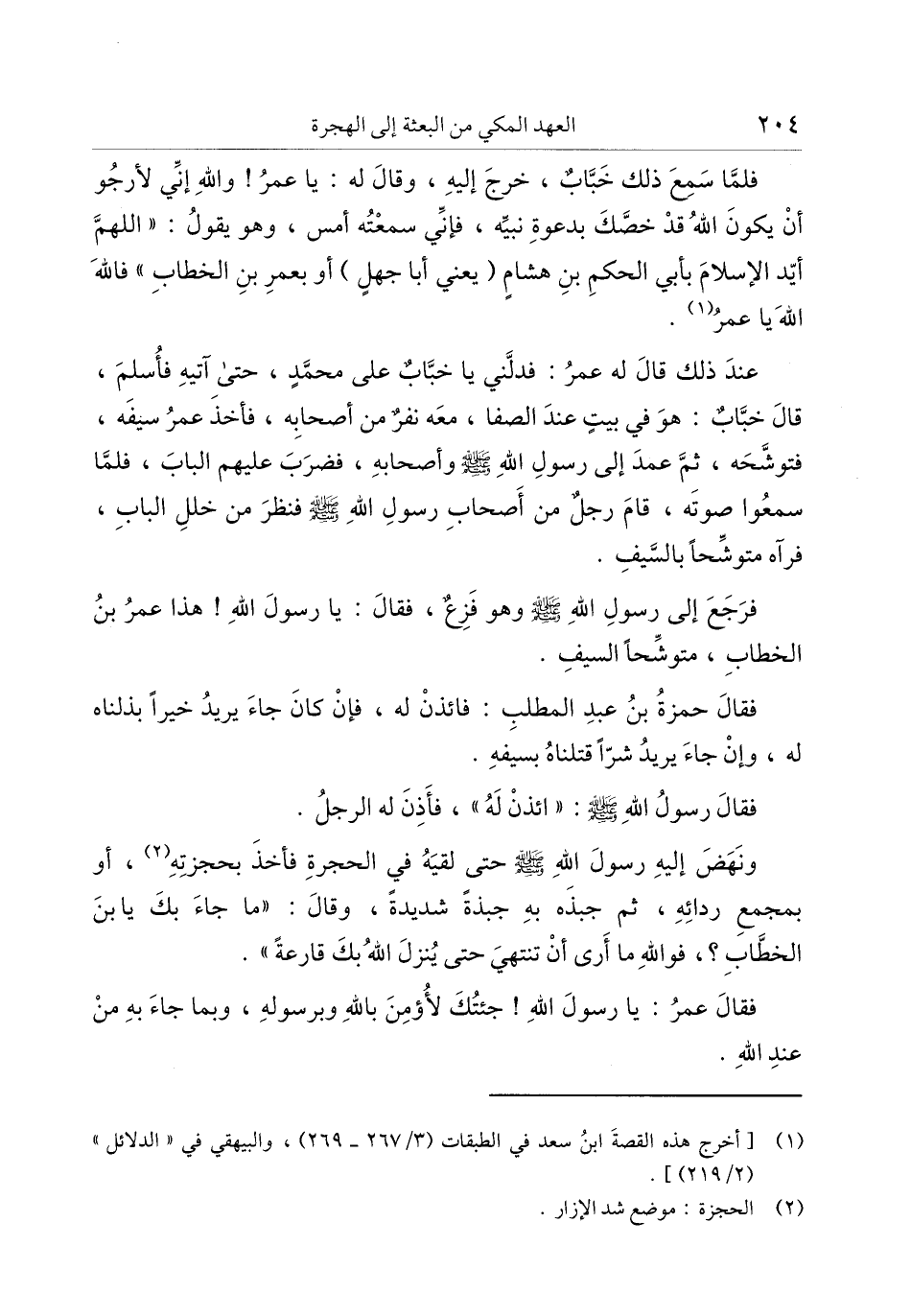 فلمّا سمع ذلك خبّاب، خرج إليه، وقال له: يا عمر! والله إنّي لأرجو أن يكون الله قد خصّك بدعوة نبيّه، فإنّي سمعته أمس، وهو يقول: «اللهمّ أيّد الإسلام بأبي الحكم بن هشام (يعني أبا جهل) أو بعمر بن الخطاب» فالله الله يا عمر «1» .