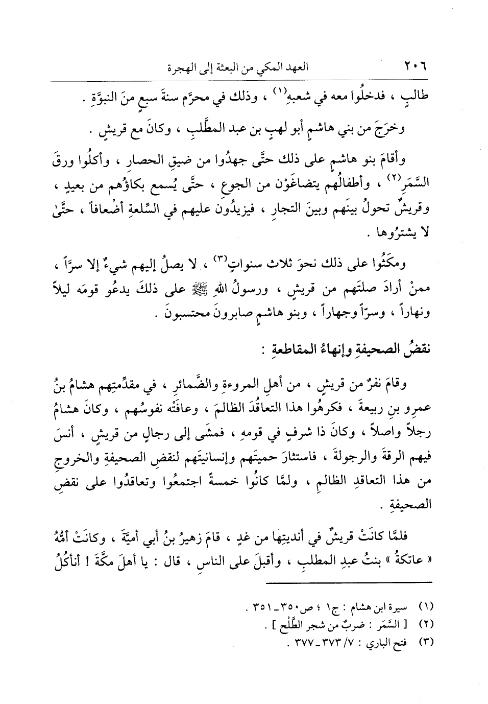 وقام نفر من قريش، من أهل المروءة والضّمائر، في مقدّمتهم هشام بن عمرو بن ربيعة، فكرهوا هذا التعاقد الظالم، وعافته نفوسهم، وكان هشام رجلا واصلا، وكان ذا شرف في قومه، فمشى إلى رجال من قريش، أنس فيهم الرقة والرجولة، فاستثار حميتهم وإنسانيتهم لنقض الصحيفة والخروج من هذا التعاقد الظالم، ولمّا كانوا خمسة اجتمعوا وتعاقدوا على نقض الصحيفة.