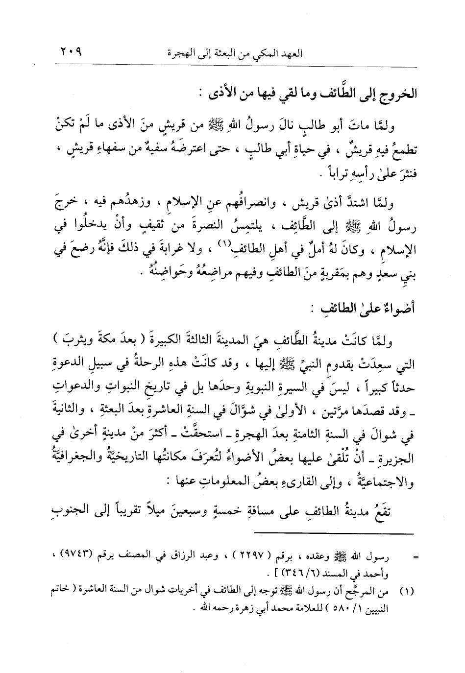 (1) من المرجّح أن رسول الله صلى الله عليه وسلم توجه إلى الطائف في أخريات شوال من السنة العاشرة (خاتم النبيين 1/ 580) للعلامة محمد أبي زهرة رحمه الله.