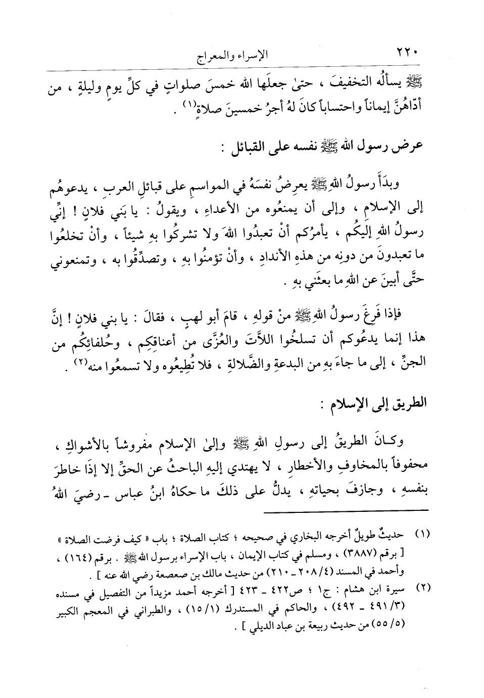 (1) حديث طويل أخرجه البخاري في صحيحه؛ كتاب الصلاة؛ باب «كيف فرضت الصلاة» [برقم (3887) ، ومسلم في كتاب الإيمان، باب الإسراء برسول الله صلى الله عليه وسلم. برقم (164) ، وأحمد في المسند (4/ 208- 210) من حديث مالك بن صعصعة رضي الله عنه] .