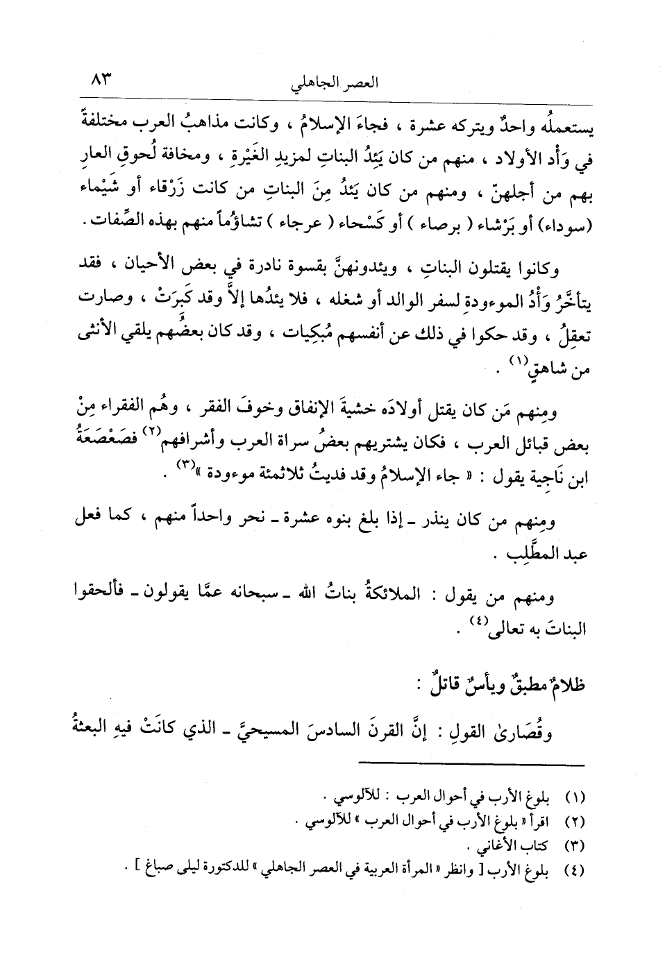 (4) بلوغ الأرب [وانظر «المرأة العربية في العصر الجاهلي» للدكتورة ليلى صباغ] .
