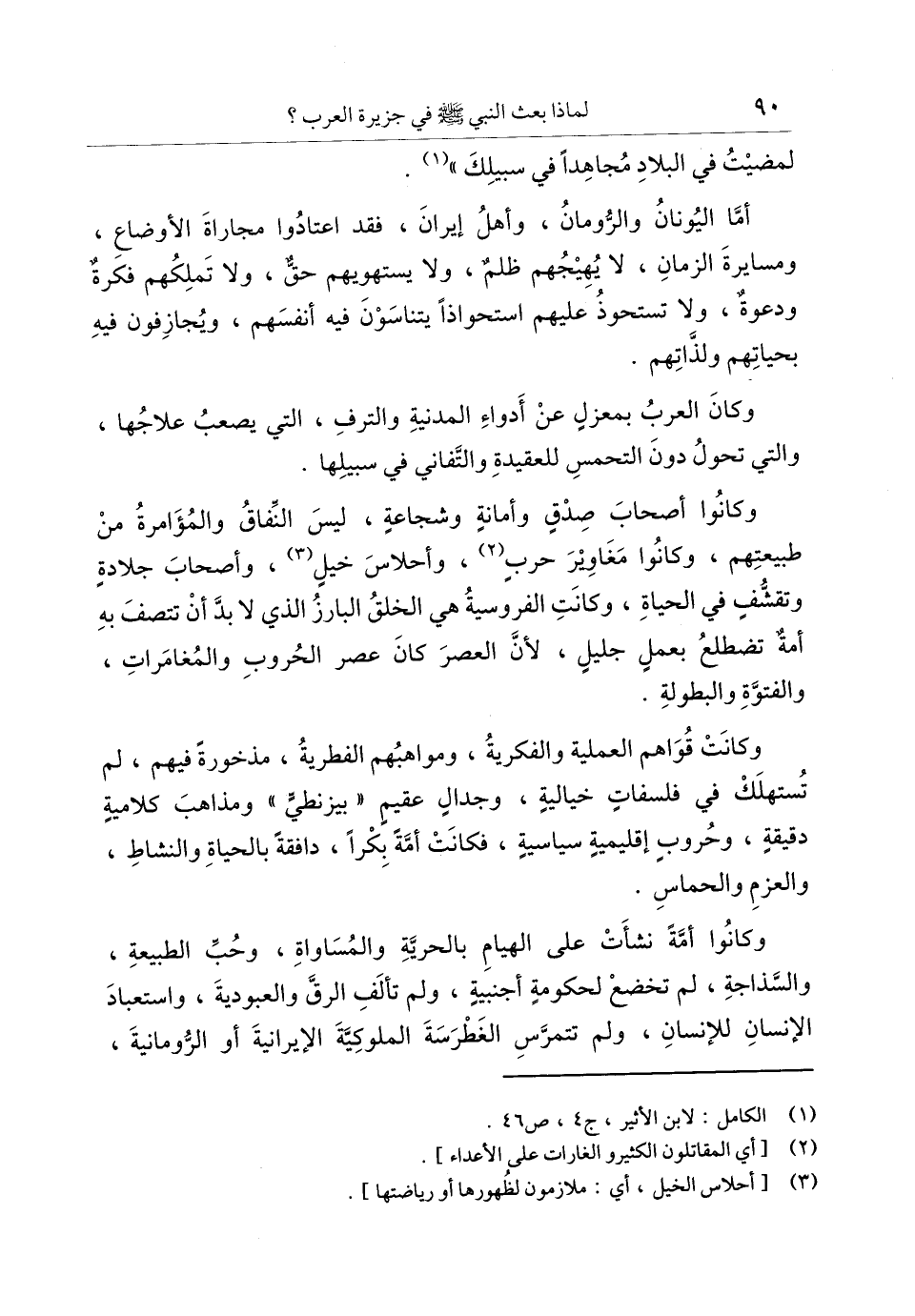 أمّا اليونان والرّومان، وأهل إيران، فقد اعتادوا مجاراة الأوضاع، ومسايرة الزمان، لا يهيجهم ظلم، ولا يستهويهم حقّ، ولا تملكهم فكرة ودعوة، ولا تستحوذ عليهم استحواذا يتناسون فيه أنفسهم، ويجازفون فيه بحياتهم ولذّاتهم.