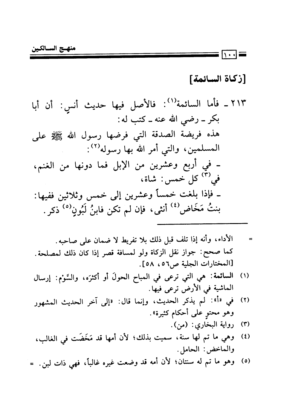 213- فأما السَّائِمة1: فَالْأَصْلُ فِيهَا حَدِيثُ أنسٍ، أَنَّ أَبَا بَكْرٍ-رضي الله عنه-كَتَبَ لَهُ: