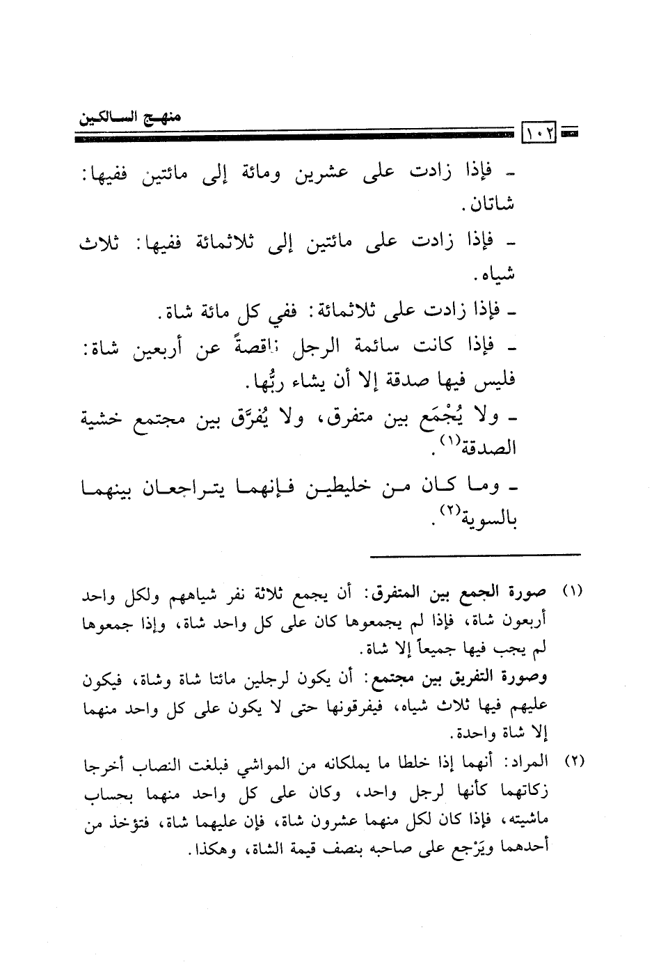 2 المراد: أنهما إذا خلطا ما يملكانه من المواشي فبلغت النصاب أخرجا زكاتهما كأنهما لرجل واحد، وكان على كل واحد منهما بحساب ماشيته، فإذا كان لكل منهما عشرون شاة، فإن عليهما شاة، فتؤخذ من أحدهما ويرجع على صاحبه بنصف قيمة الشاة، وهكذا.