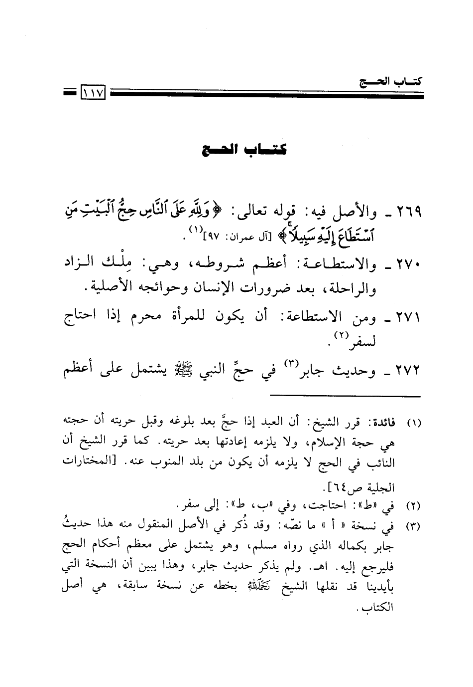 3 في نسخة "أ" ما نصه: وقد ذكر في الأصل المنقول منه هذا، حديث جابر بكماله الذي رواه مسلم، وهو يشتمل على معظم أحكام الحج فليرجع إليه. اهـ. ولم يذكر حديث جابر، وهذا يبين أن النسخة التي بأيدينا قد نقلها الشيخ -رحمه الله- بِخَطِّهِ عن نسخة سابقة، هي أصل الكتاب.