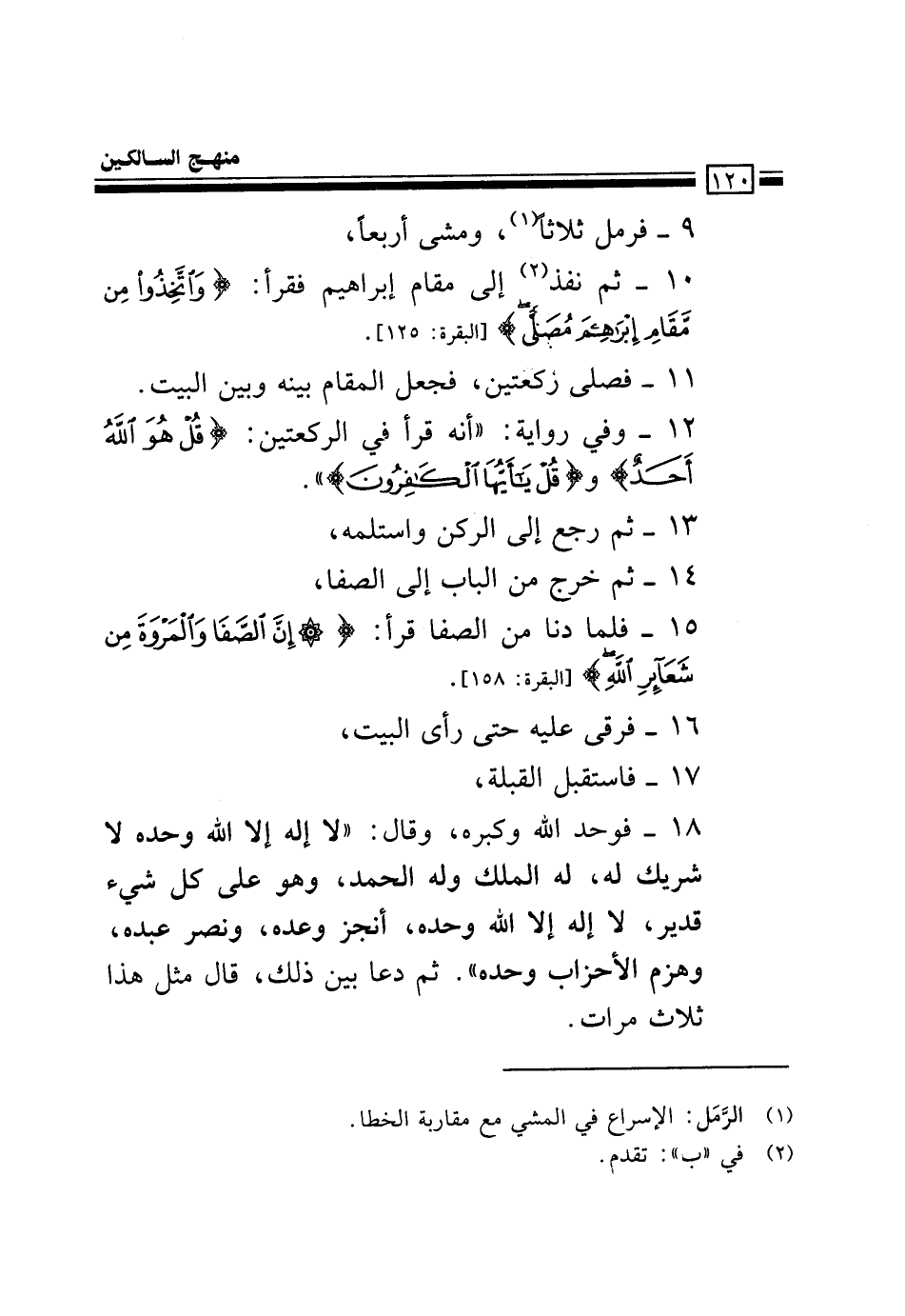 10- ثُمَّ نَفَذَ2 إِلَى مَقَامِ إِبْرَاهِيمَ فَقَرَأَ: {وَاتَّخِذُوا مِنْ مَقَامِ إِبْرَاهِيمَ مُصَلّى} [اَلْبَقَرَةِ: 125] .