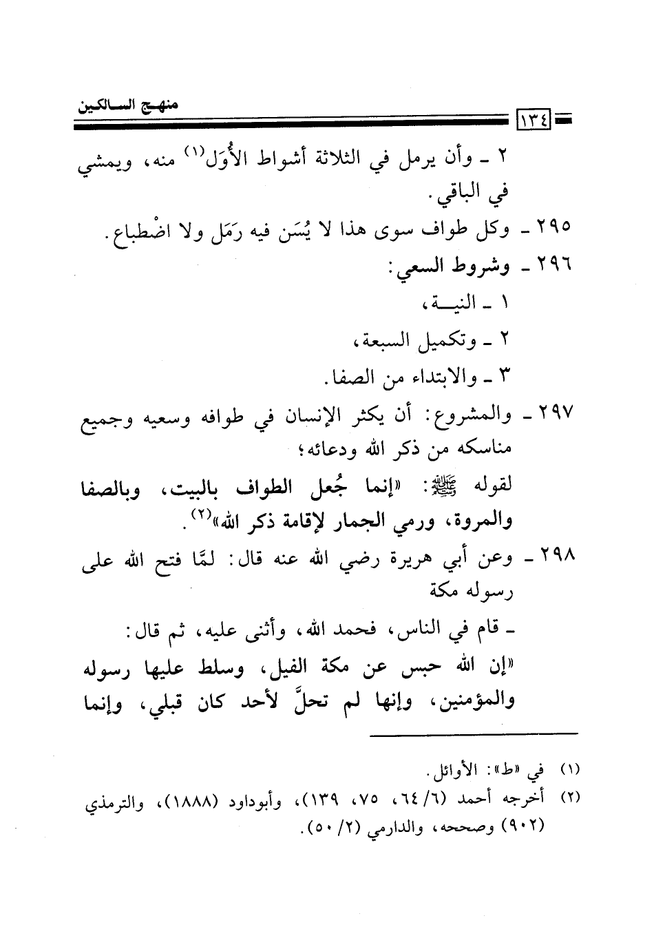 296- وَشُرُوطُ اَلسَّعْيِ: