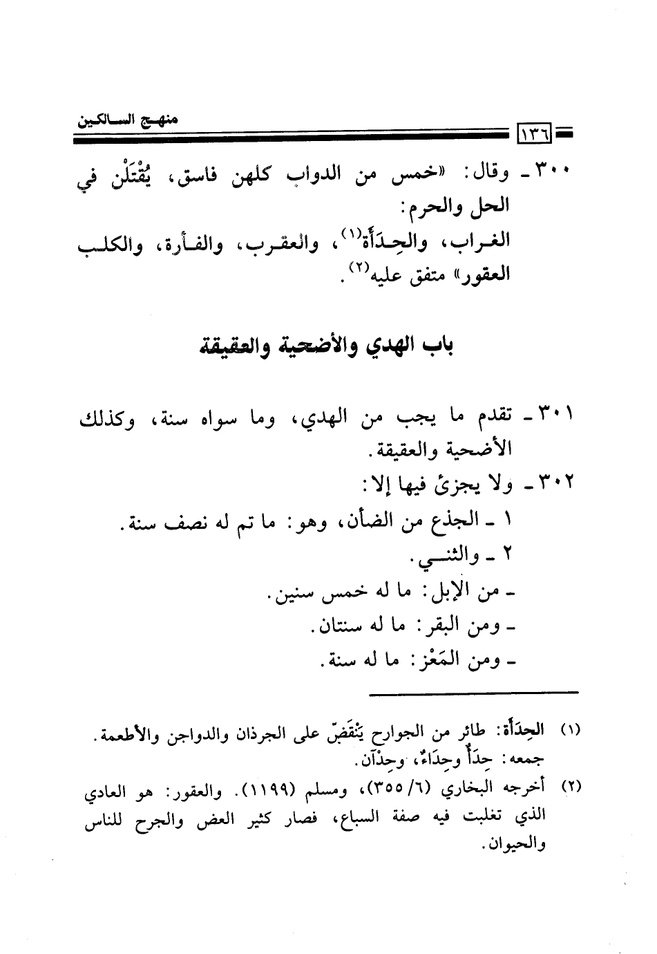 301- تَقَدَّمَ مَا يَجِبُ مِنَ اَلْهَدْيِ، وَمَا سِوَاهُ سُنَّةٌ، وَكَذَلِكَ اَلْأُضْحِيَّةُ واَلْعَقِيقَةُ.