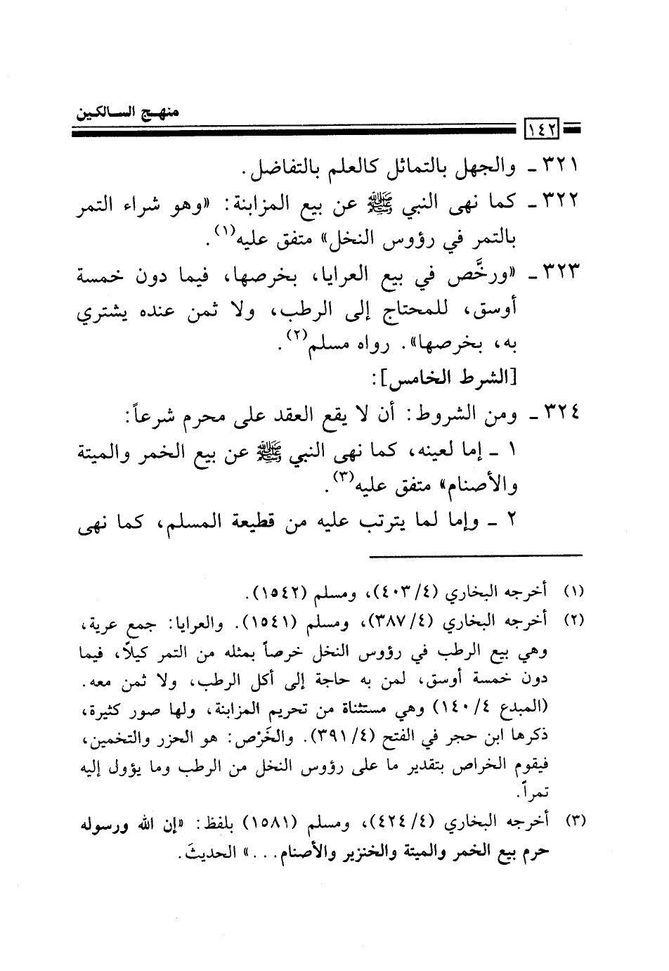323- وَرَخَّصَ فِي بَيْعِ اَلْعَرَايَا، بِخَرْصِهَا، فِيمَا دُونَ خَمْسَةِ أَوْسُقٍ، لِلْمُحْتَاجِ إِلَى اَلرُّطَبِ، وَلَا ثَمَنَ عِنْدَهُ يَشْتَرِي بِهِ، بِخَرْصِهَا. رَوَاهُ مُسْلِمٌ2.