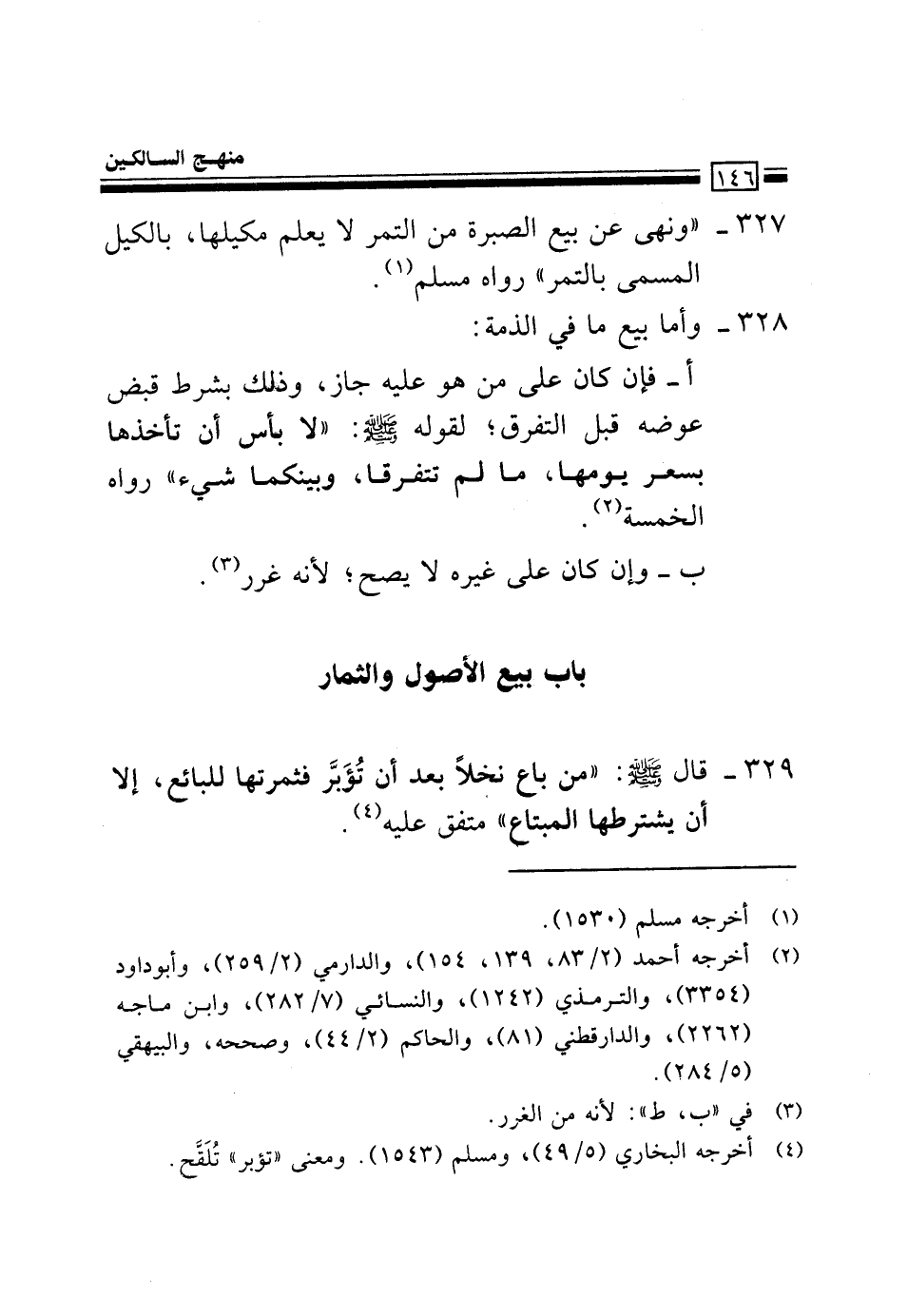 329- قَالَ صلى الله عليه وسلم: "مِنْ بَاعٍ نَخْلاً بَعْدَ أَنْ تُؤَبَّر فثمرتها للبائع، إلا أن يشترطها المبتاع" متفق عليه1.