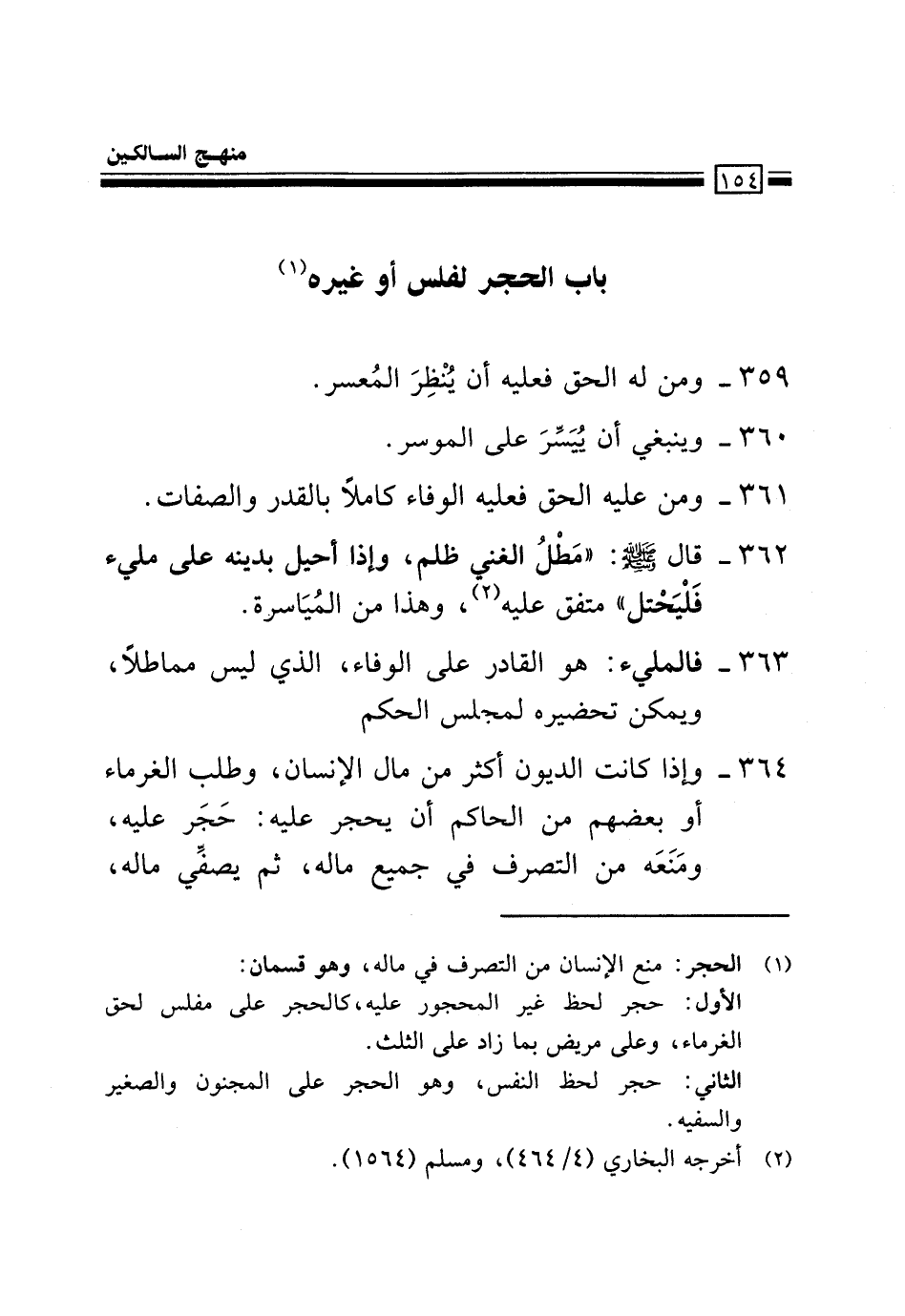 363- فَالْمَلِيءُ: هُوَ اَلْقَادِرُ عَلَى اَلْوَفَاءِ، اَلَّذِي لَيْسَ مُمَاطِلاً، وَيُمْكِنُ تَحْضِيرُهُ لِمَجْلِسِ الْحُكْمِ.