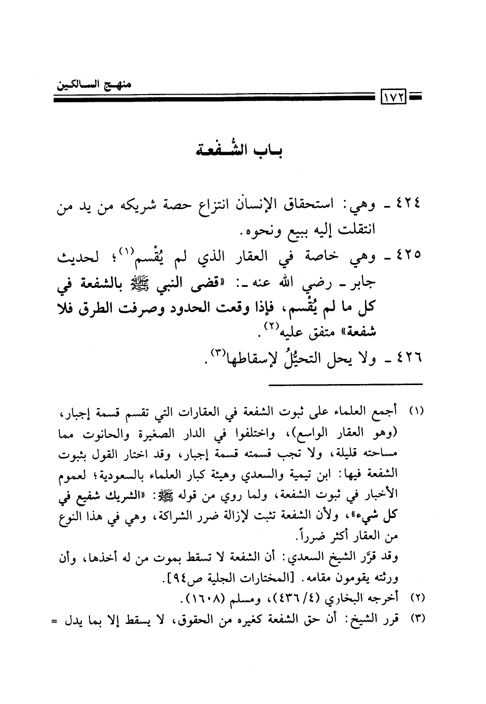 3 قرر الشيخ أن حق الشفعة كغيره من الحقوق، لا يسقط إلا بما يدل =
