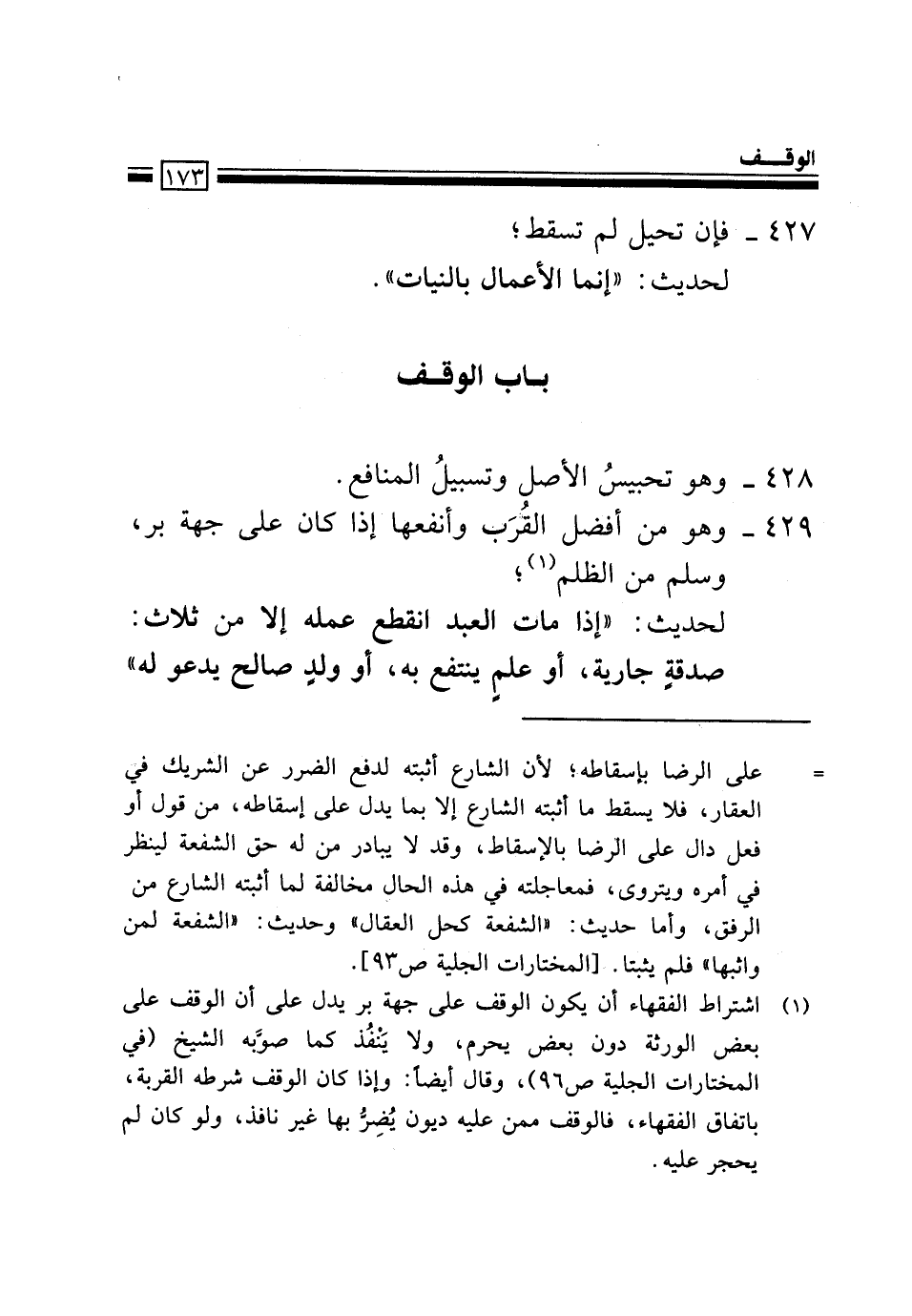 428- وَهُوَ تَحْبِيسُ اَلْأَصْلِ وَتَسْبِيلَ اَلْمَنَافِعِ.
