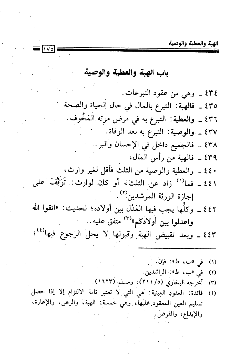 440- وَالْعَطِيَّةِ وَالْوَصِيَّةُ مِنْ اَلثُّلُثِ فَأَقَلُّ لِغَيْرِ وَارِثٍ،