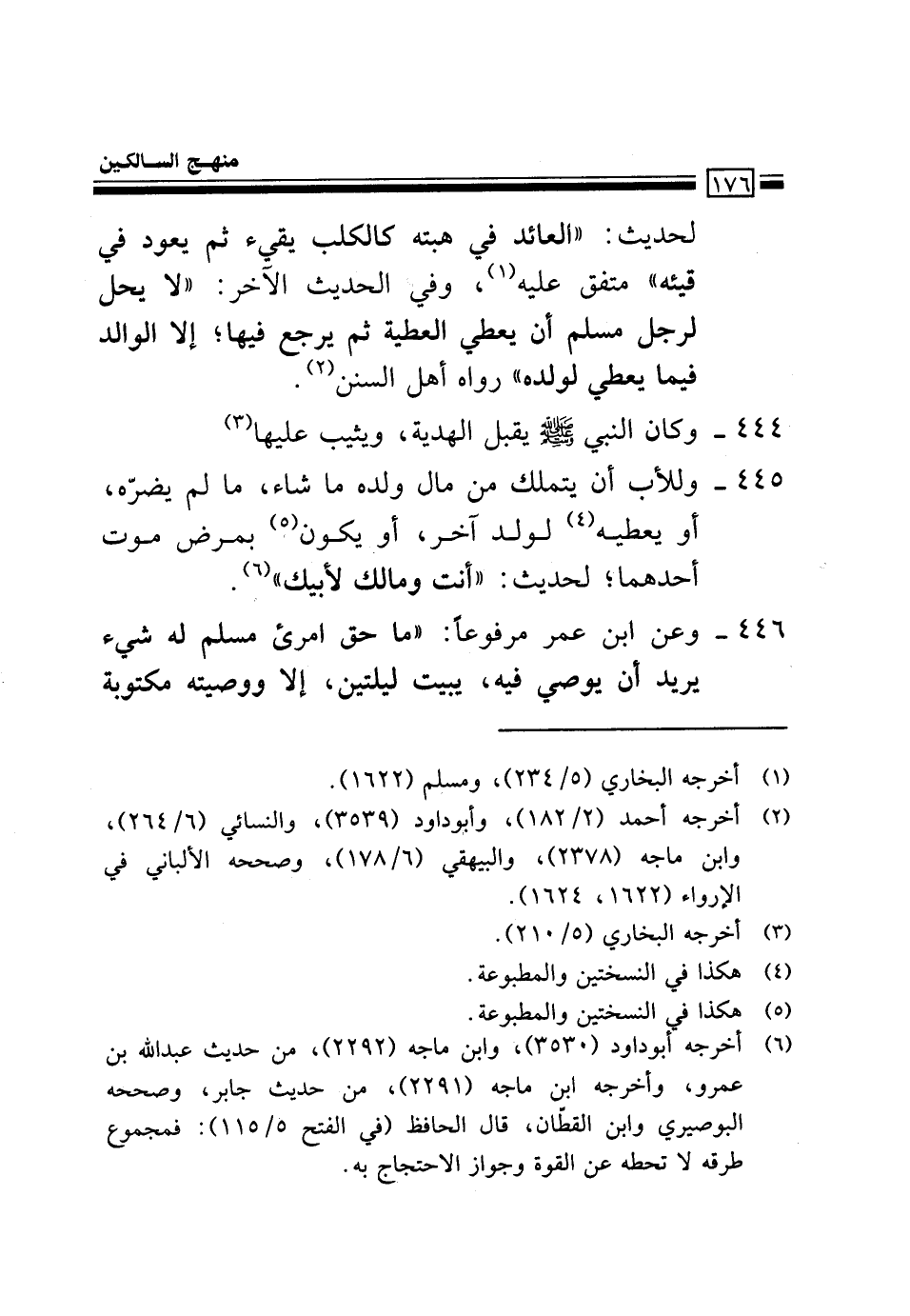 446- وعن ابن عمر مرفوعًا: "ما حق امرئ مسلم له شيء يريد أن يوصي فيه، يبيت ليلتين، إلا ووصيته مكتوبة