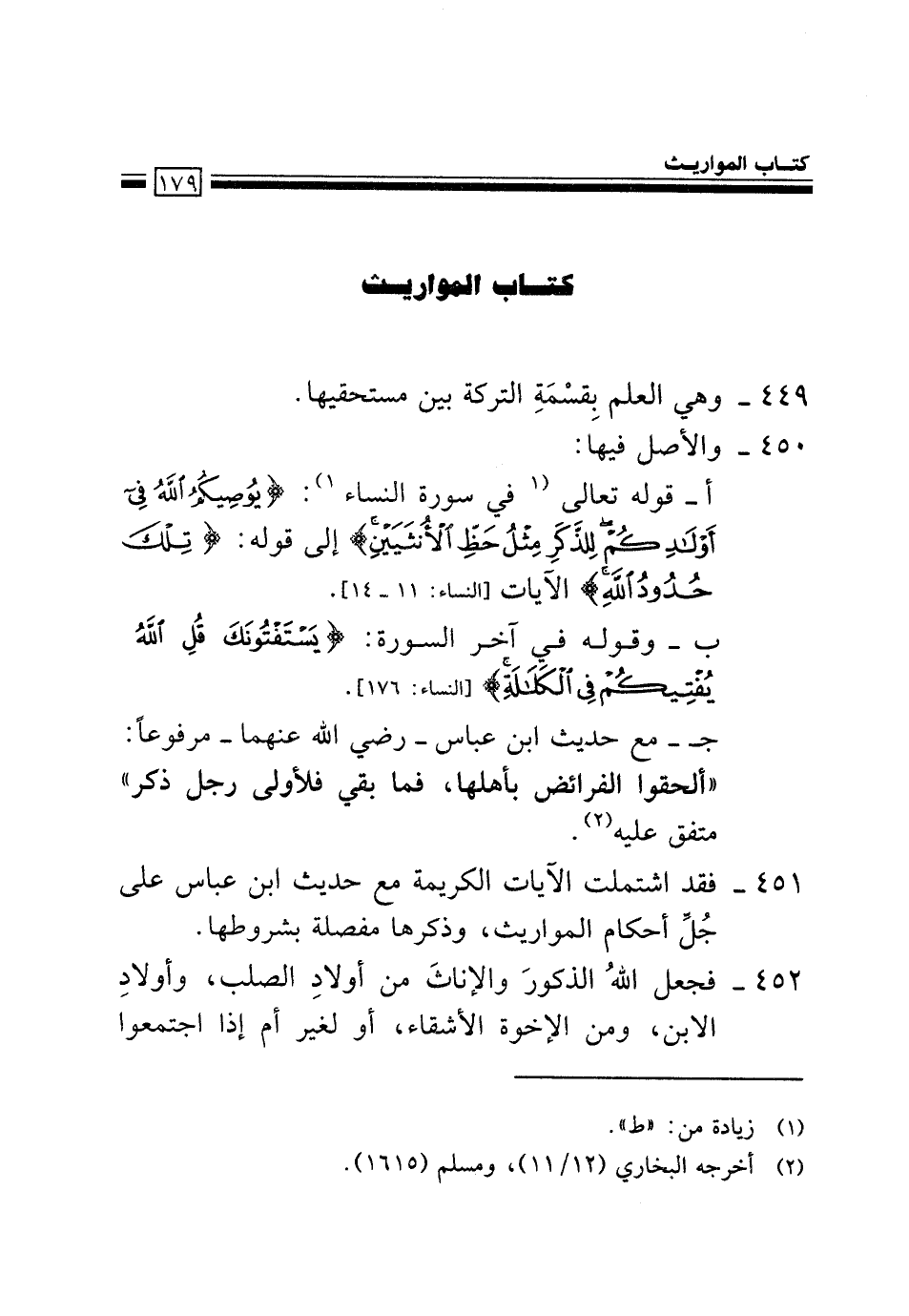 449- وَهِيَ اَلْعِلْمَ بِقِسْمَةِ اَلتَّرِكَةِ بَيْنَ مُسْتَحِقِّيهَا.