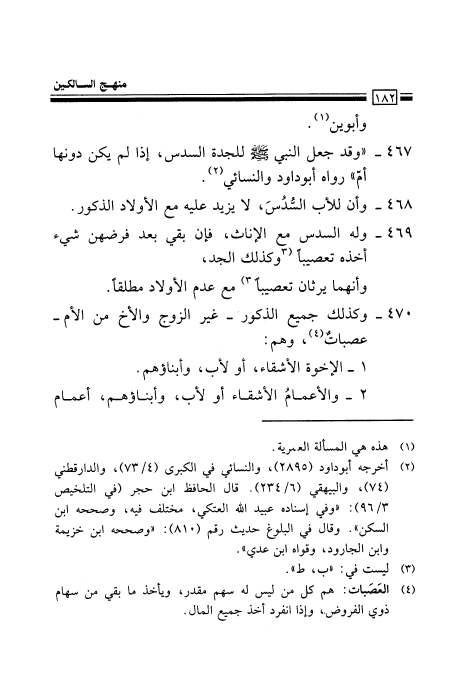 467- وَقَدْ جَعَلَ اَلنَّبِيَّ -صلى الله عليه وسلم- للجدة السدس، إذا لم يكن دونها أم. رَوَاهُ أَبُو دَاوُدَ وَالنِّسَائِي2.