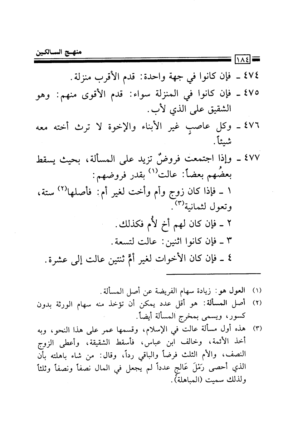 477- وإذا اجتمعت فروضٌ تزيد على المسألة، بحيث يسقط بعضهم بعضًا: عَالَتْ1 بِقَدْرِ فُرُوضِهِمْ: