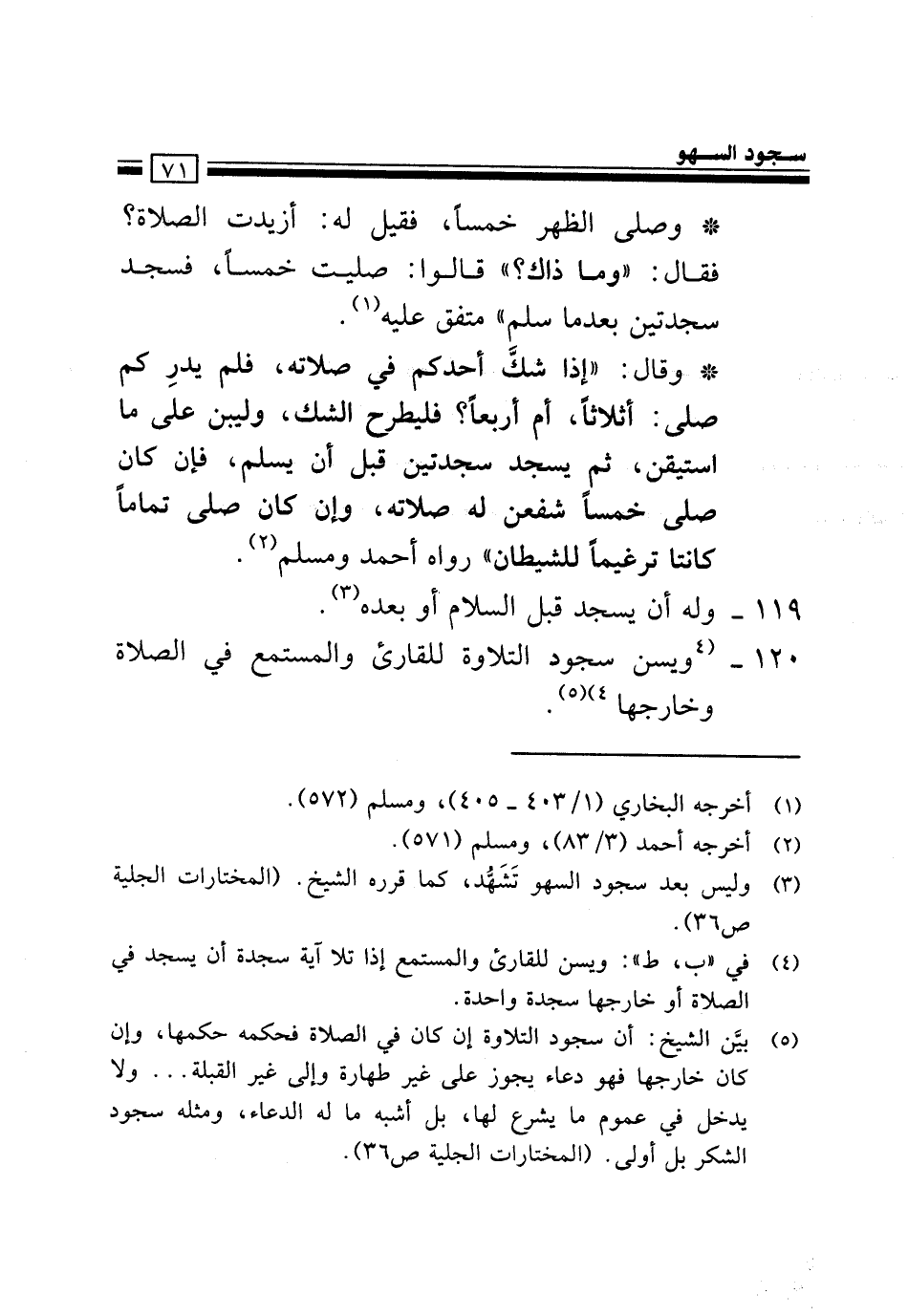 120- (ويسن سجود التلاوة للقارئ والمستمع في الصلاة وخارجها) 4، 5.