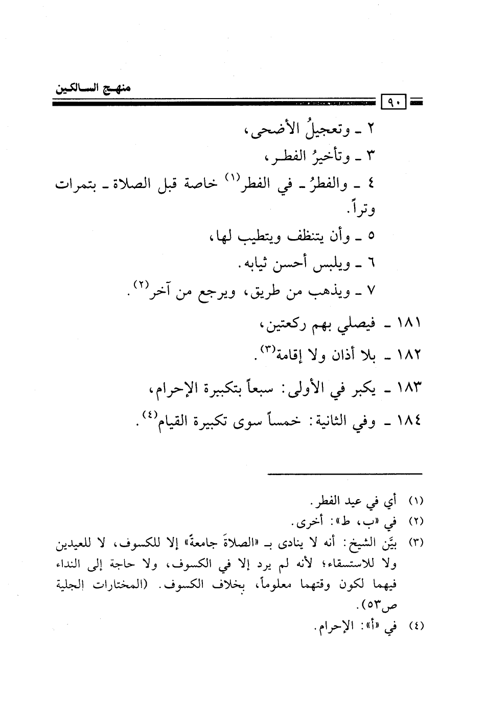 3 بيَّن الشيخ: أنه لا ينادى بـ "الصلاة جامعة" إلا للكسوف، لا للعيدين ولا للاستسقاء؛ لأنه لم يرد إلا في الكسوف، ولا حاجة إلى النداء فيهما لكون وقتهما معلوما، بخلاف الكسوف. "المختارات الجلية، ص: 53".