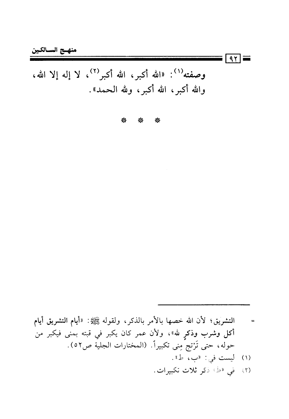 وَصِفَتُهُ1: اَللَّهُ أَكْبَرُ، اَللَّهُ أَكْبَرُ2، لَا إِلَهَ إِلَّا اَللَّهُ، وَاَللَّهُ أَكْبَرُ، اَللَّهُ أَكْبَرُ، وَلِلَّهِ الحمد.