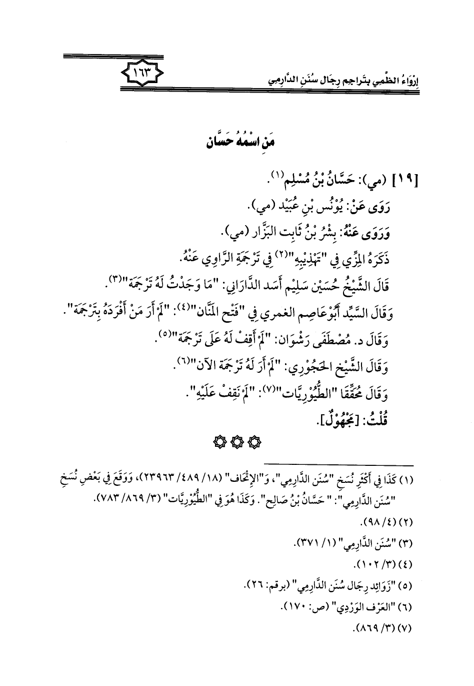 (¬٥) "زَوَائِد رِجَال سُنَن الدَّارِمِي" (برقم: ٢٦).