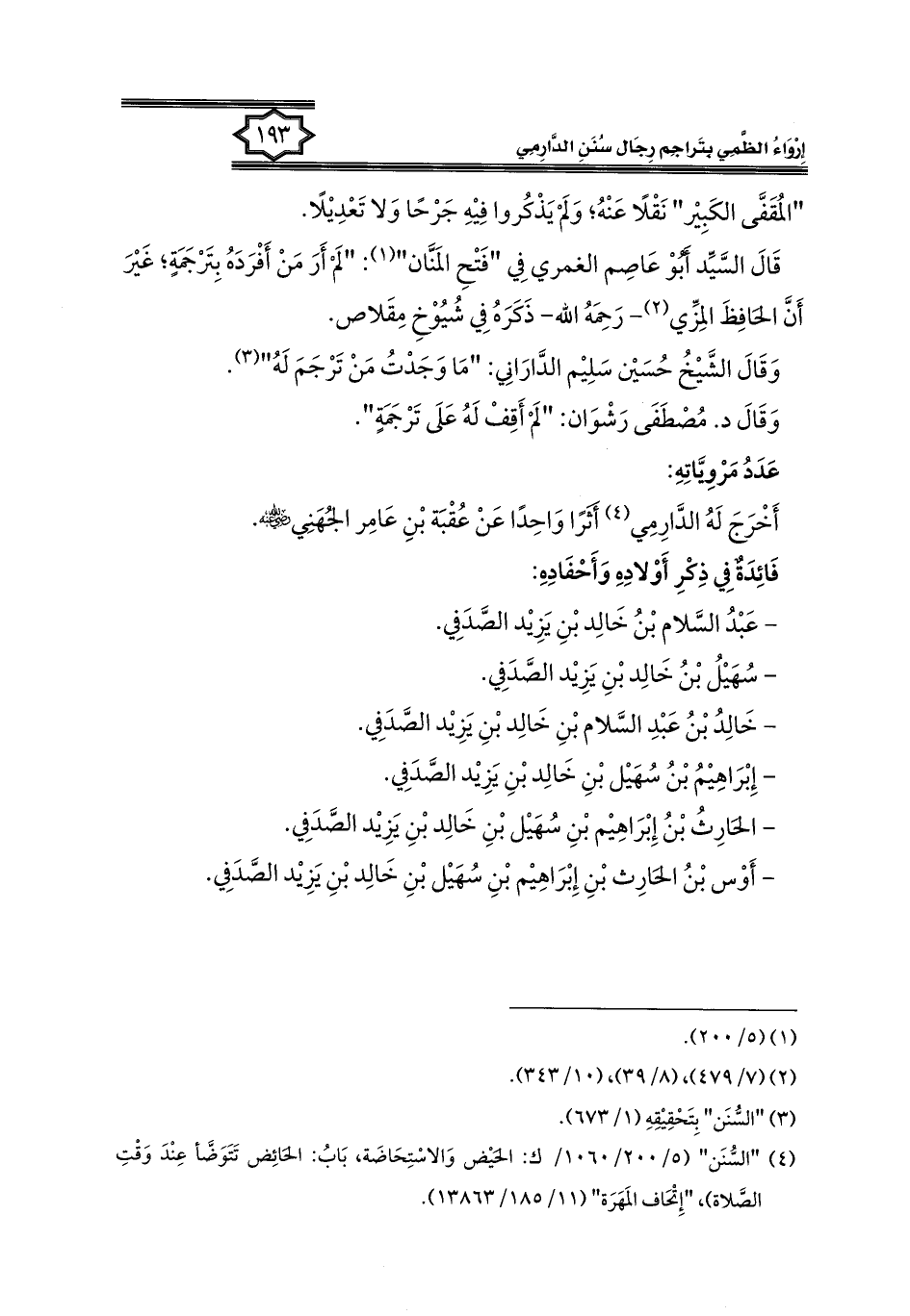 كتاب إرواء الظمي بتراجم رجال سنن الدارمي