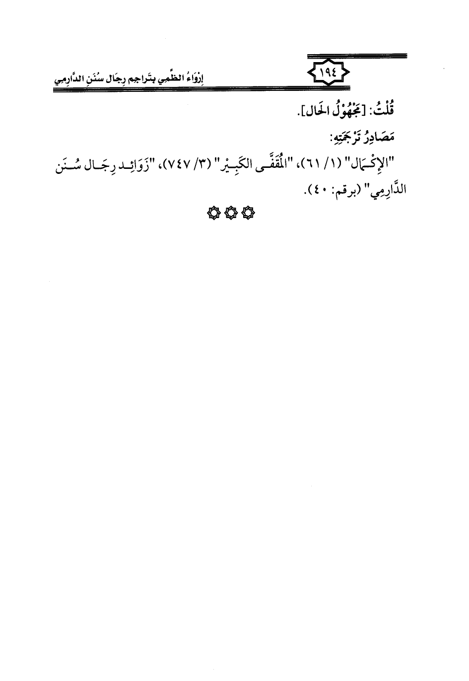 كتاب إرواء الظمي بتراجم رجال سنن الدارمي
